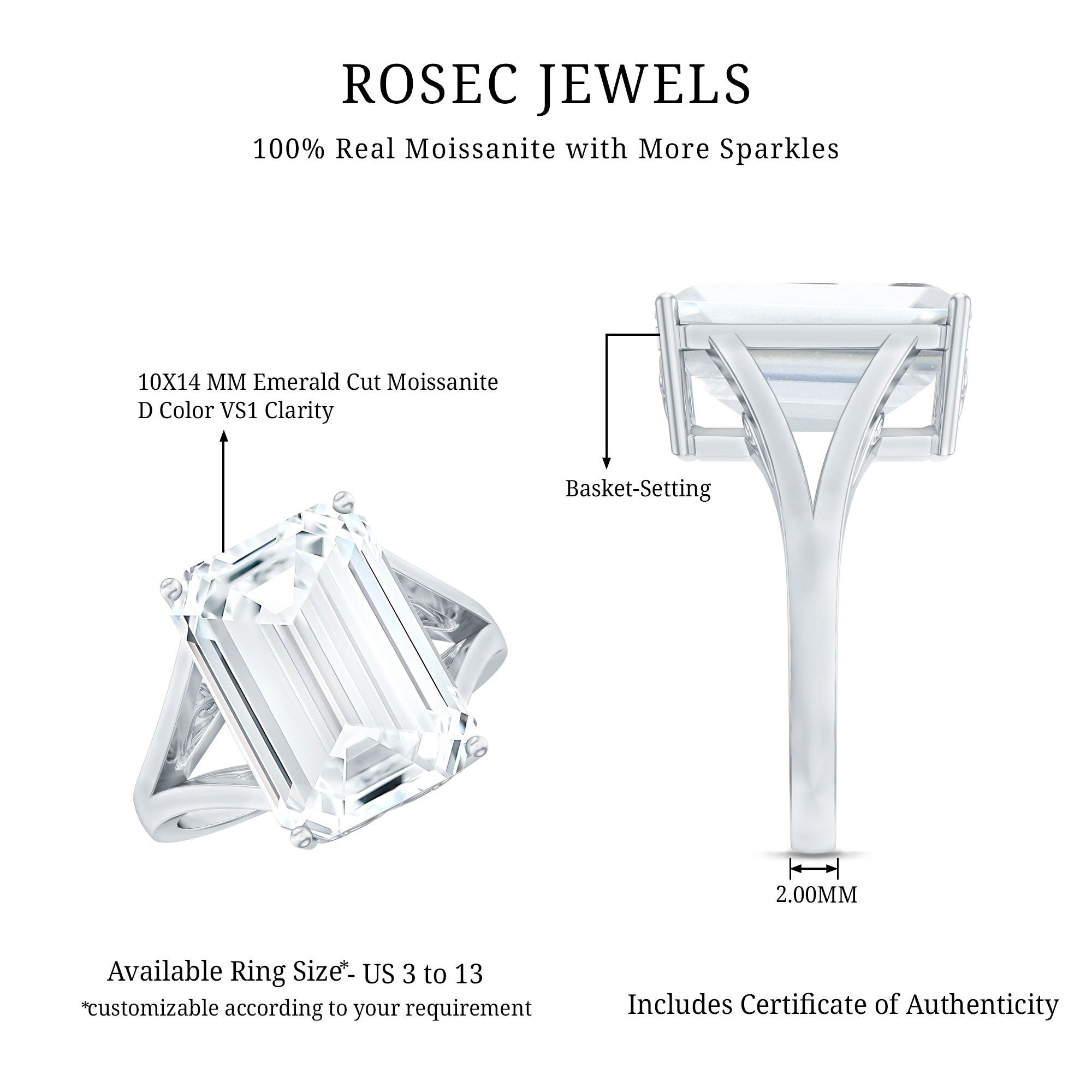 If you love sparkling solitaires, this Non Traditional Engagement Ring is just made for you. With a large 10X14 MM emerald cut moissanite at the center, this piece grabs attention with its shine, size, and elegance. It is bold, bright, and full of charm, perfect for the one who wants their ring to be as special as their love story. The stone is set in a secure basket setting that lifts it beautifully, allowing light to hit it from every angle and create a stunning sparkle. The Moissanite Emerald Cut Ring features a split shank design, which adds a modern touch and makes this ring look even more elegant on the finger. On the front and back sides, you will find beautiful carved vintage style scroll patterns under the stone, giving this Statement Ring a timeless and royal feel. We handcrafted this Moissanite Diamond Engagement Ring with care and is available in different metal color options. You can also select the ring size that fits you perfectly, making it easy to wear.