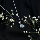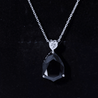 This Lab Grown Black Diamond Necklace is an exquisite piece of jewelry that evokes deep emotions with beauty. Capturing the attention effortlessly this Teardrop Necklace symbolizes love with a timeless allure. Crafted from White Gold Plated Silver, this Cocktail Necklace is embellished with 18X13 MM Pear Shape Lab Grown Diamond in Prong Setting. Accompanying this is a 5 MM Heart Shape Moissanite that sits on the top of the main gemstone. This beautiful contrast gives an outstanding appearance. Attached to a chain, this Lab Black Diamond Pendant adds a touch of sophistication to your outfit. Captivated with its enchanting allure, this Statement Necklace is much more associated with the deep emotions of a combined teardrop and a heart design. The Necklace has AAAA Quality Lab Gown Black Diamond and D-VS1 Quality Moissanite. Its timeless symbol of sophistication and grace, also makes for a perfect gift for a loved one or a cherished addition to any jewelry collection.