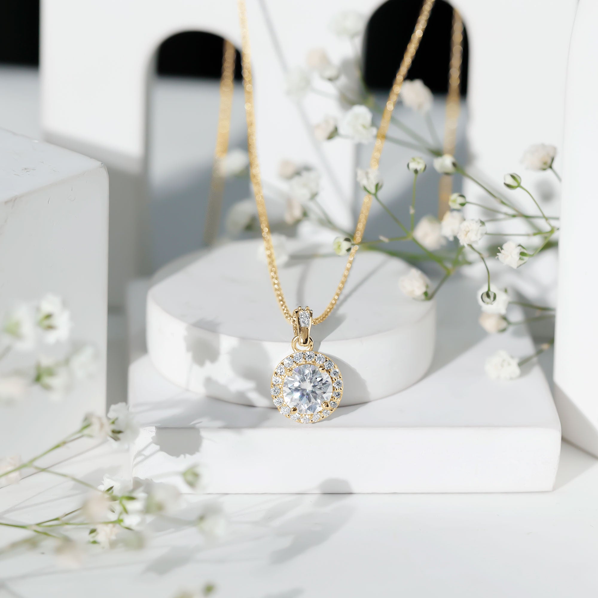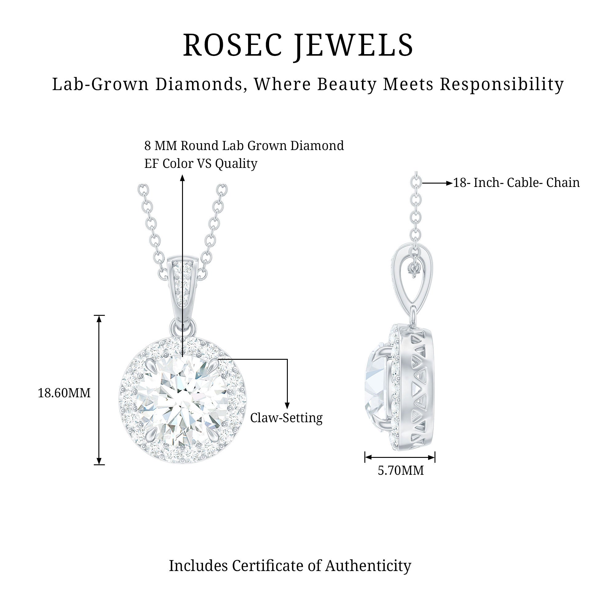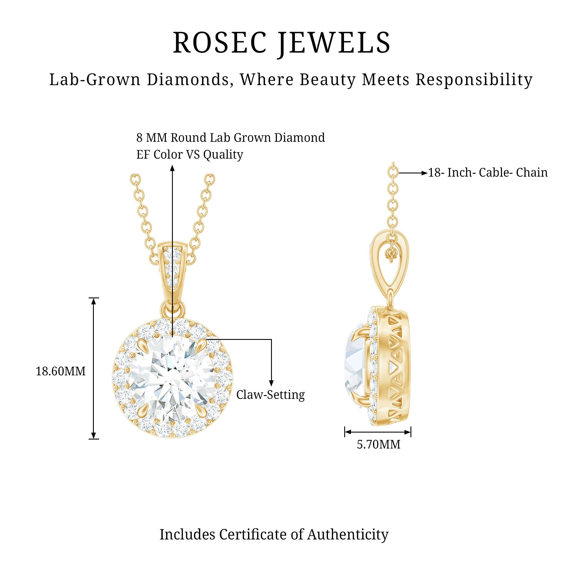 Certified 2 Carat Lab Grown Diamond Halo Pendant Necklace