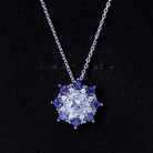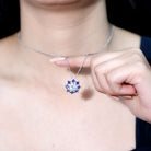 Certified 2 Carat Moissanite and Lab Blue Sapphire Halo Pendant with Silver Chain