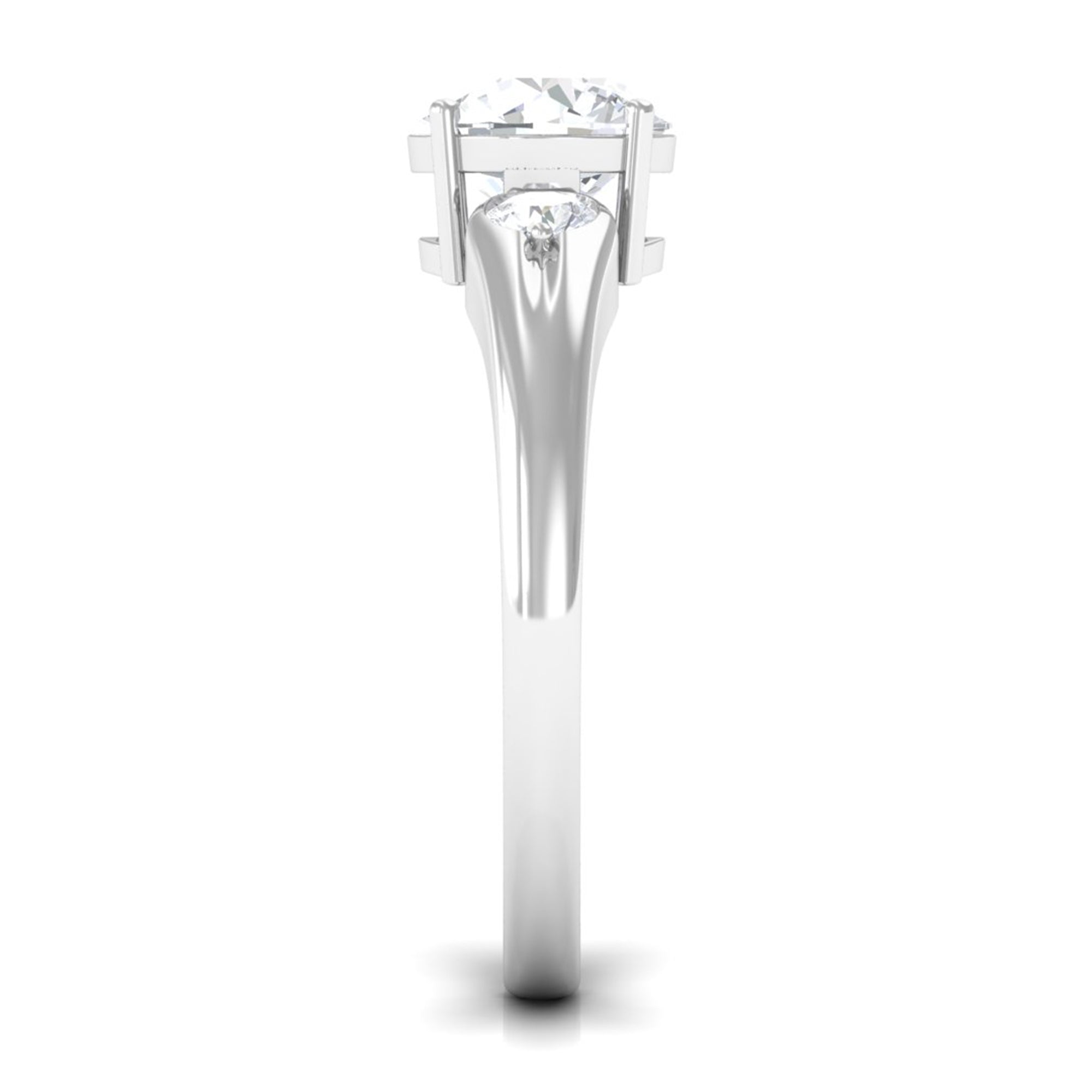 Seal your commitment with a truly distinctive Moissanite Promise Ring carefully crafted to embody love and significance. At its center is a 7 MM round moissanite, accompanied by two 3 mm round moissanite side stones in a secure prong setting, providing a harmonious and refined look. This thoughtful feature transforms this Moissanite Solitaire Ring into more than merely a piece of jewelry - it evolves into a treasured keepsake that narrates your love story. Whether you are commemorating a significant milestone or conveying your sincere commitment, this Relationship Ring serves as an ideal memento she will cherish eternally. Designed to encapsulate the journey of your relationship, this Moissanite Proposal Ring merges contemporary aesthetics with timeless elegance. Showcasing D color VS1 clarity stones, this Round Moissanite Ring for Women exudes remarkable fire and brilliance - establishing it as a genuine emblem of lasting love and connection.