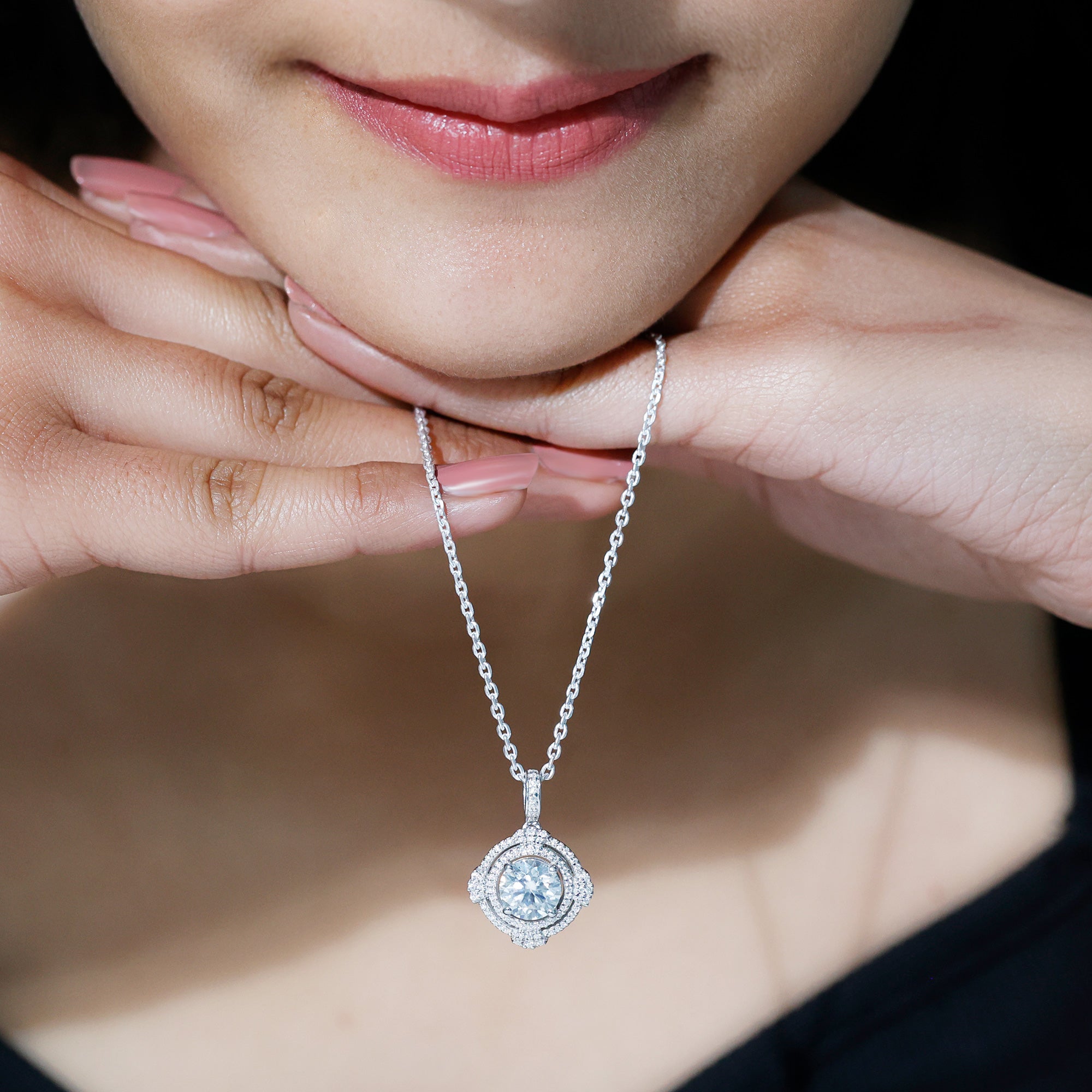 Certified 2 CT Moissanite Double Halo Necklace with Chain
