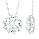 Certified 2 CT Round Moissanite Sunburst Pendant Necklace
