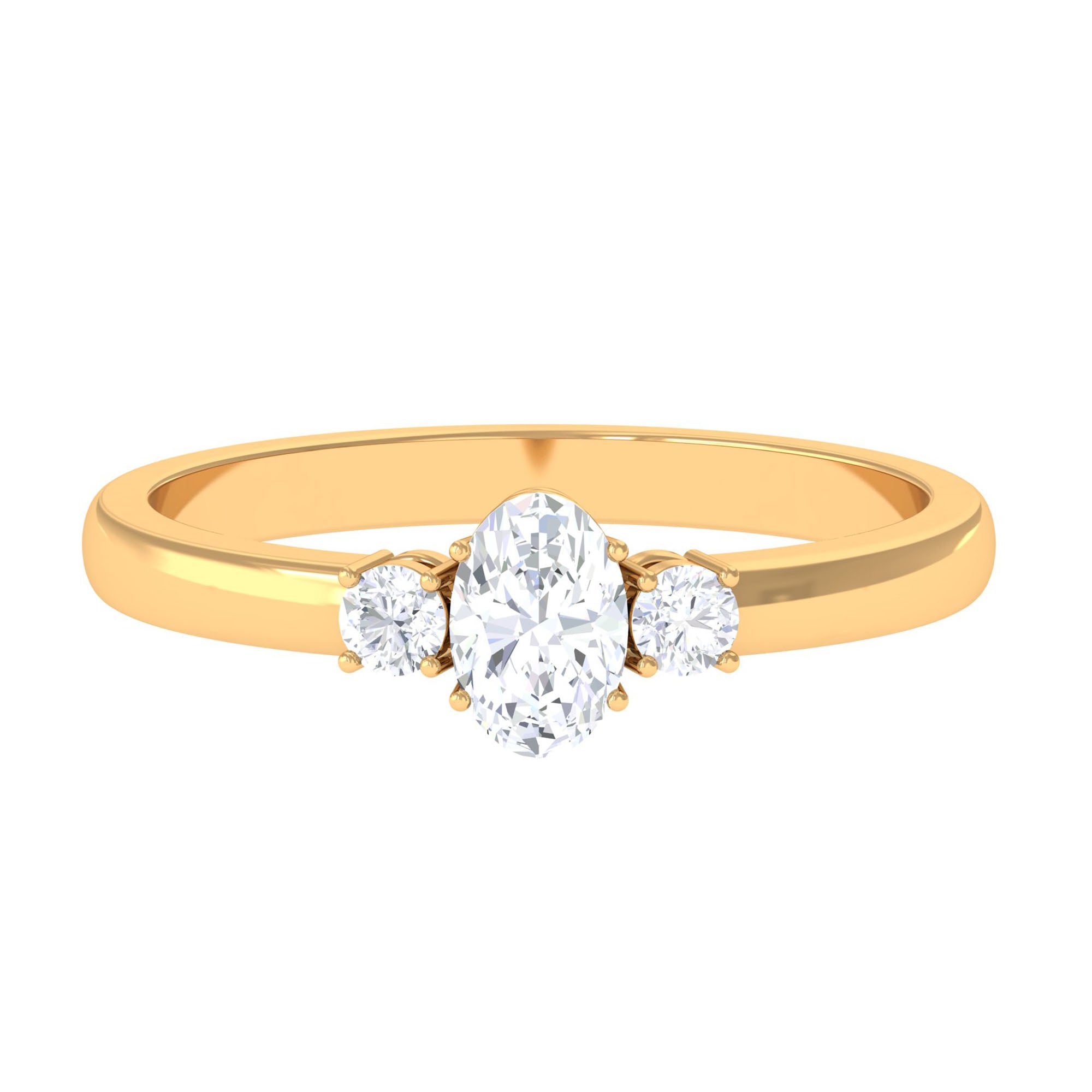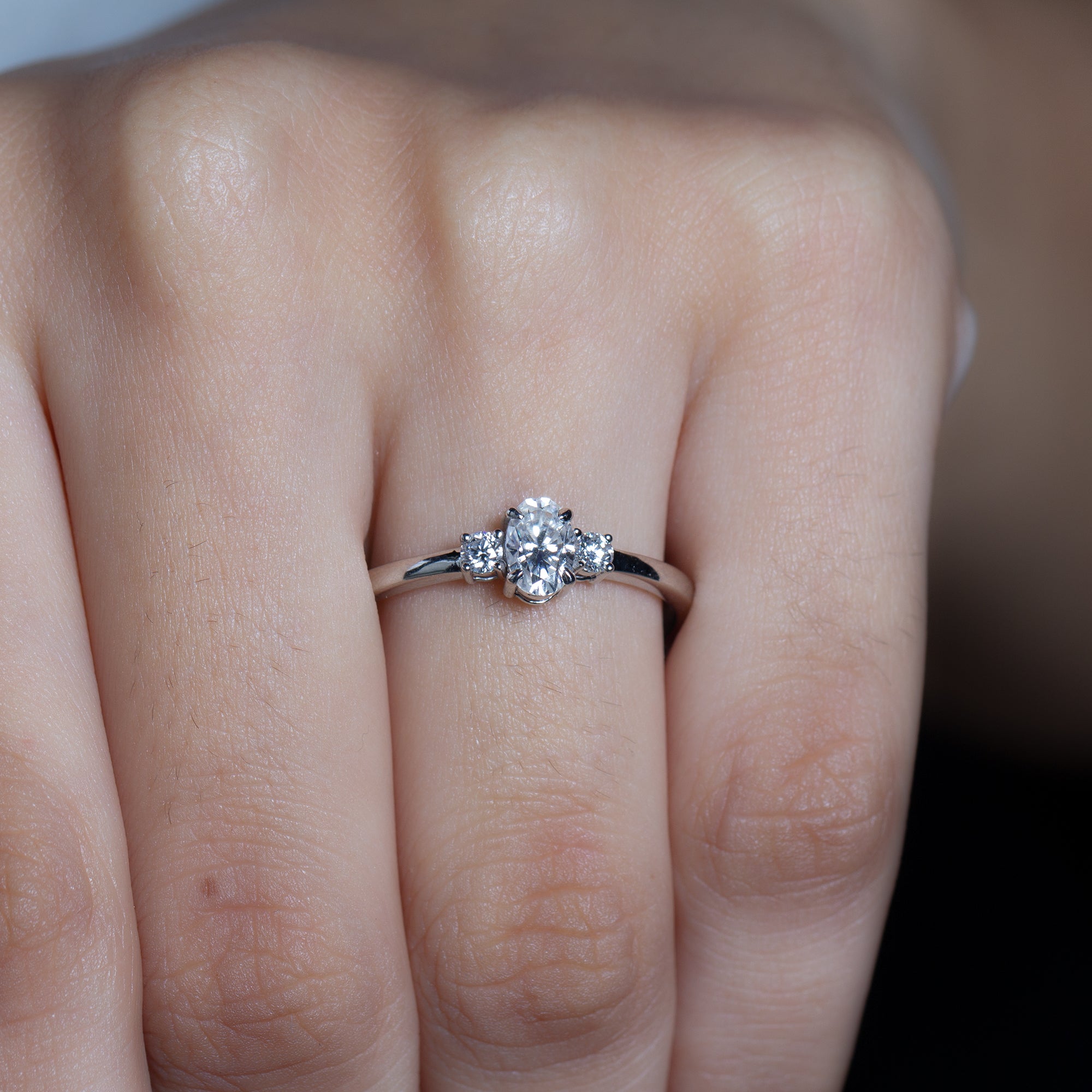 Mark your love story with this beautiful Three Stone Moissanite Ring that symbolizes the past, present, and future of your journey together. Thoughtfully handcrafted by Rosec Jewels, this elegant Promise Ring for Her is a meaningful way to show your commitment. At the center of the ring is a sparkling 4X6 MM oval shaped Moissanite, paired with two round cut Moissanite stones on each side. All three stones are set in secure prongs, giving the Simple Ring a neat and classic look. The design is timeless and full of meaning, perfect for someone who loves classic style with a modern touch. Each stone represents a special part of your relationship, the memories you have made, the love you share now, and the future you are building together. This makes the 3 Stone Ring not just a piece of jewelry, but a symbol of your journey and promises. The Moissanite stones are of D color and VS1 clarity, offering amazing brilliance and fire that shines with every move. This Past Present and Future Ring is a beautiful keepsake she will cherish forever, a reminder of your love, your memories, and everything that is yet to come.