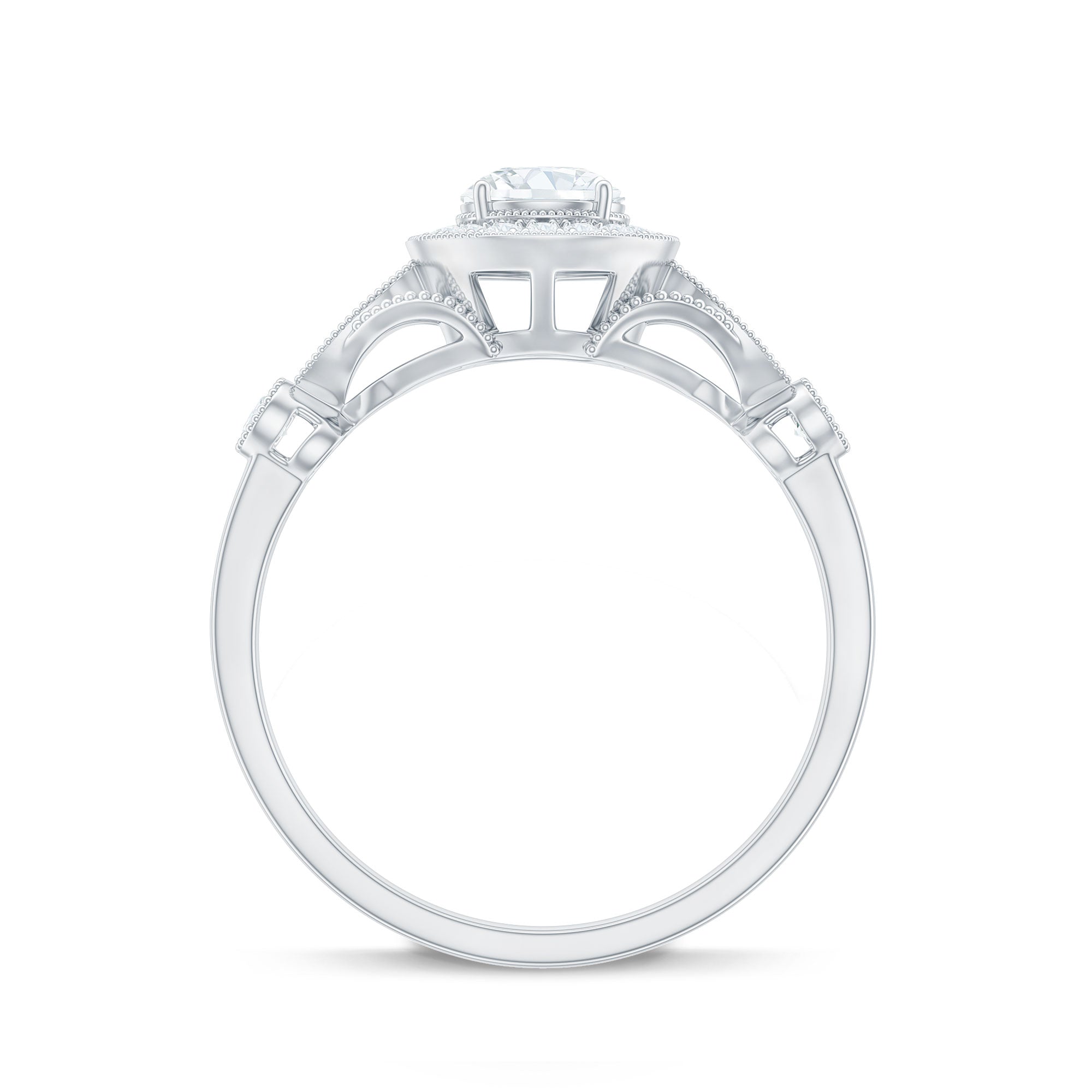 Certified 5 MM Lab Grown Diamond Halo Engagement Ring With Side Stones