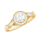 Capture the romance and elegance of bygone eras with this Vintage Style Engagement Ring. At its center is a 5 MM round-cut diamond, surrounded by a halo of smaller stones and intricate beaded detailing. Additional diamonds are set within marquise-shaped frames on either side of the center stone, adding depth and sophistication. This Round Diamond Ring is a true masterpiece, featuring vintage-inspired elements that are perfect for the bride seeking a unique piece with old-world craftsmanship. Every gemstone in this Antique Engagement Ring is lab-grown and comes with a certificate of authenticity, providing you with complete peace of mind about your purchase.