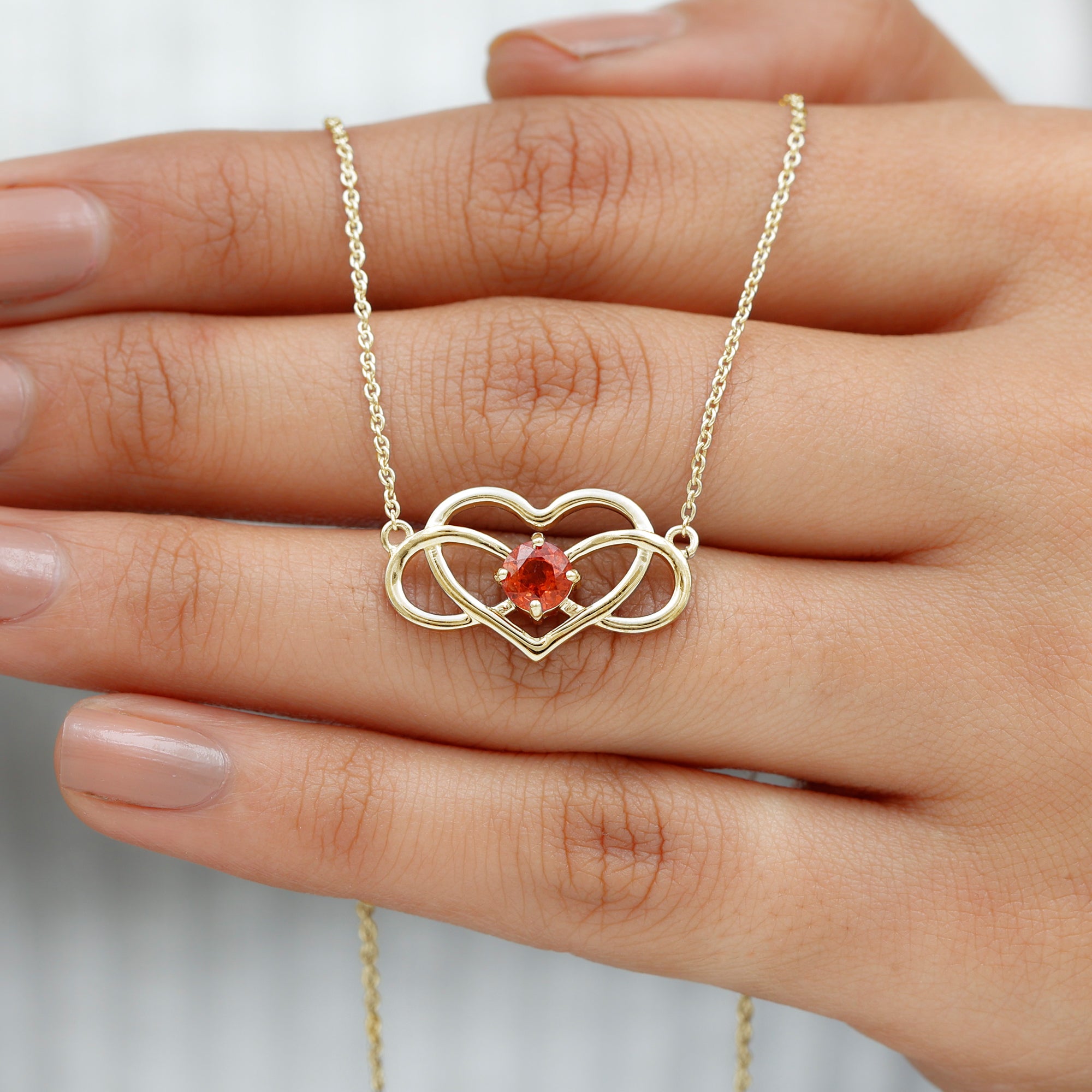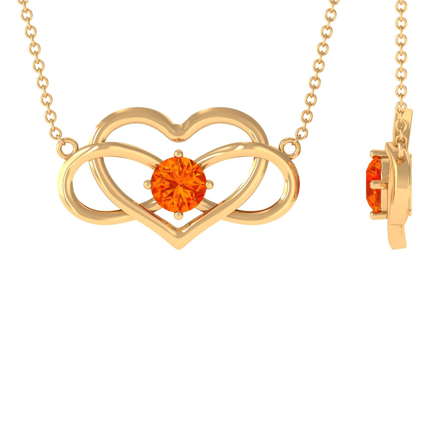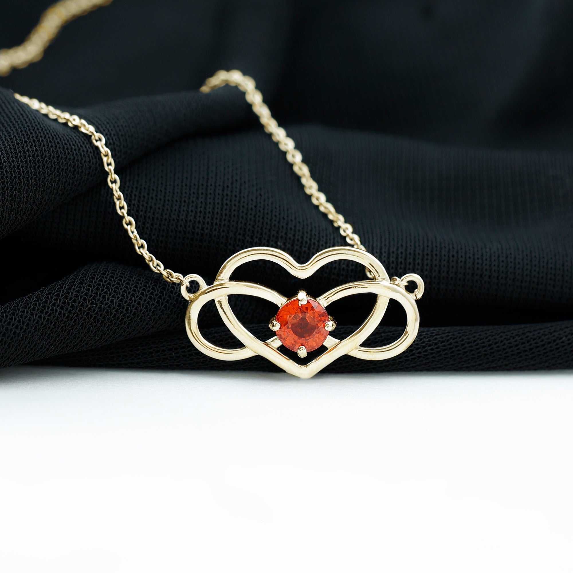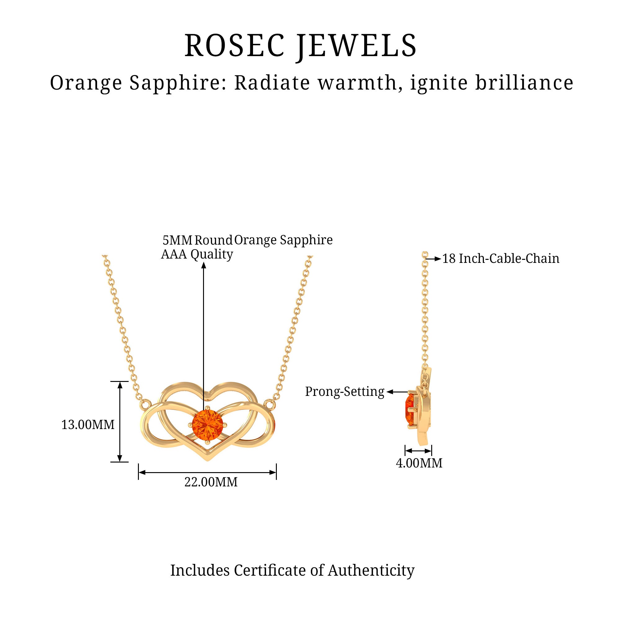 Certified 5 MM Round Cut Orange Sapphire Infinity Heart Necklace