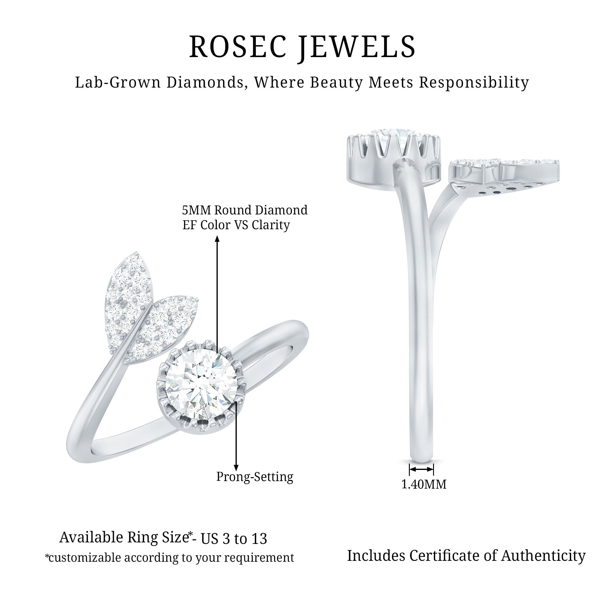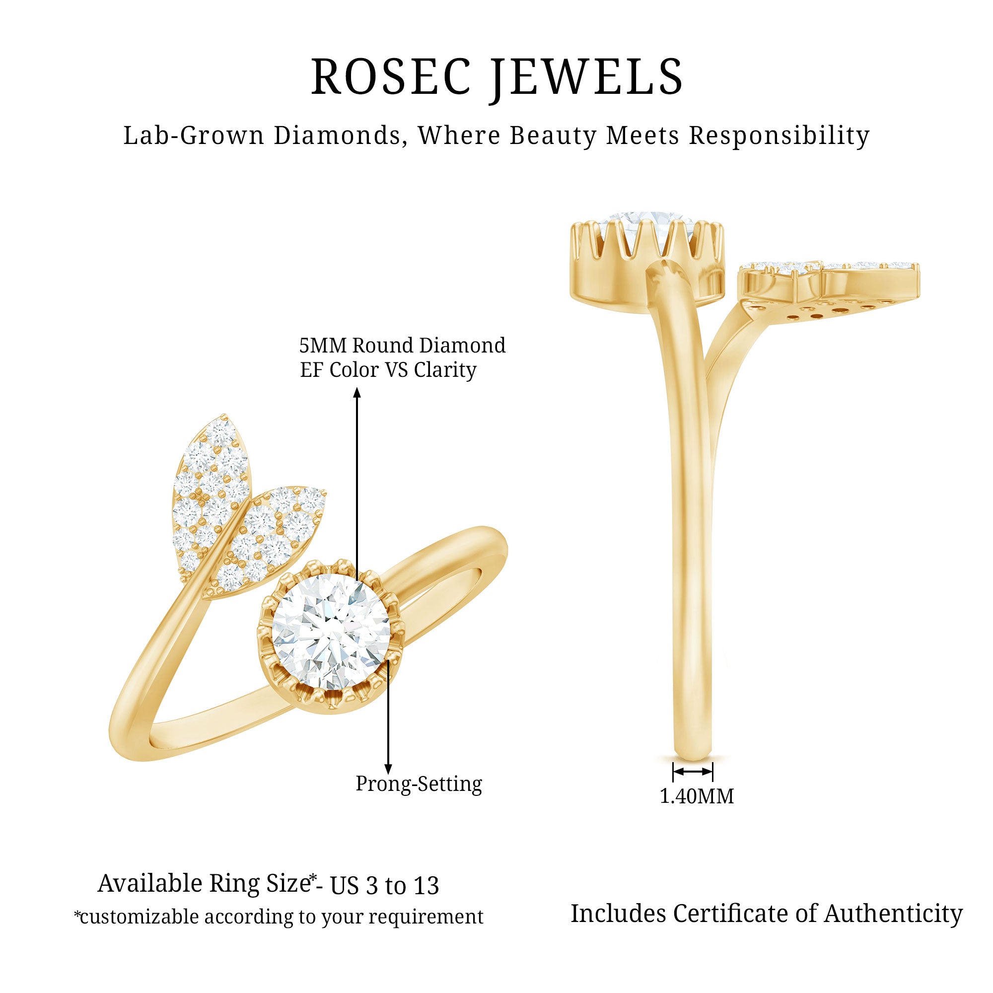 Certified 5 MM Round Lab Grown Diamond Tail Cuff Ring