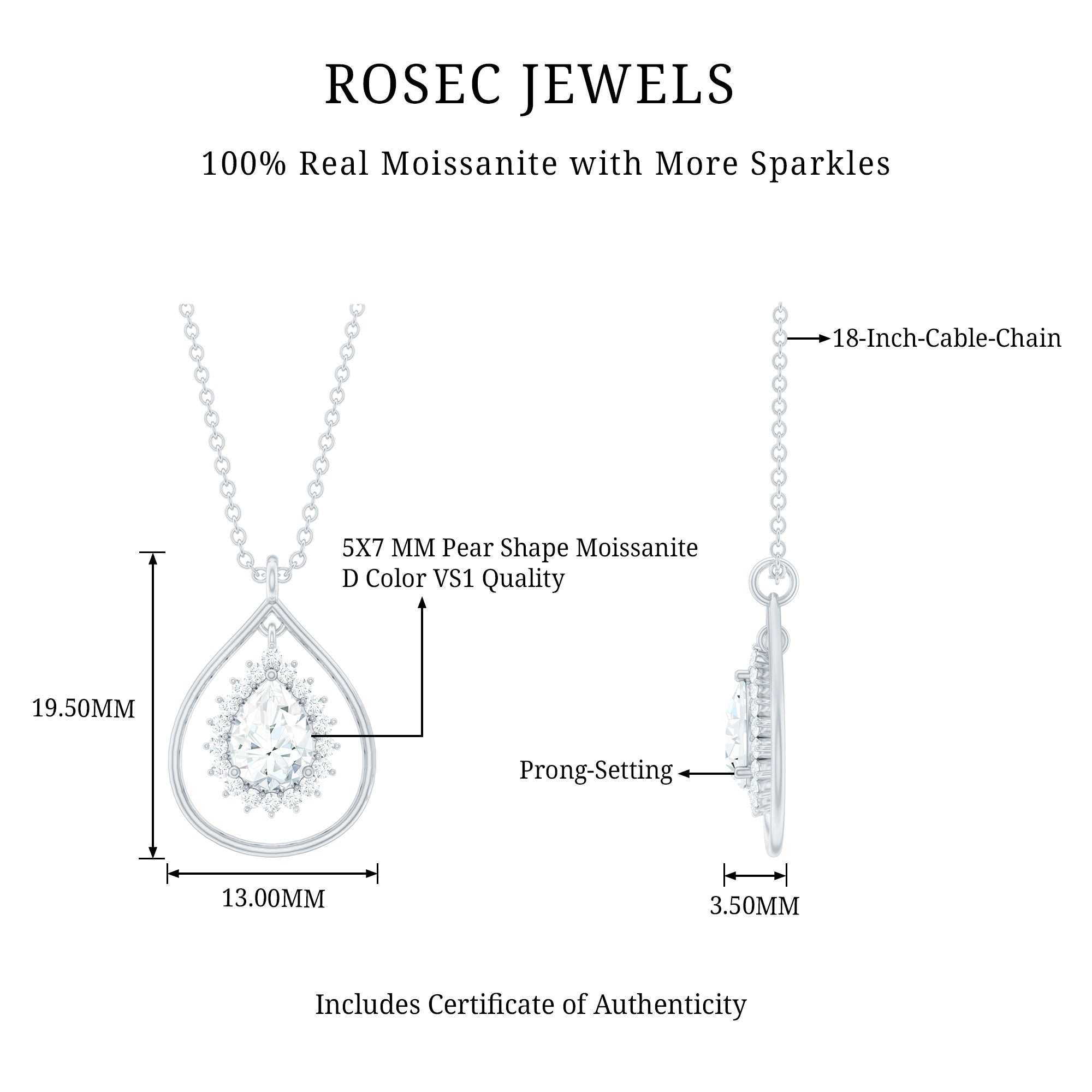 Certified 5X7 MM Moissanite Teardrop Pendant Necklace