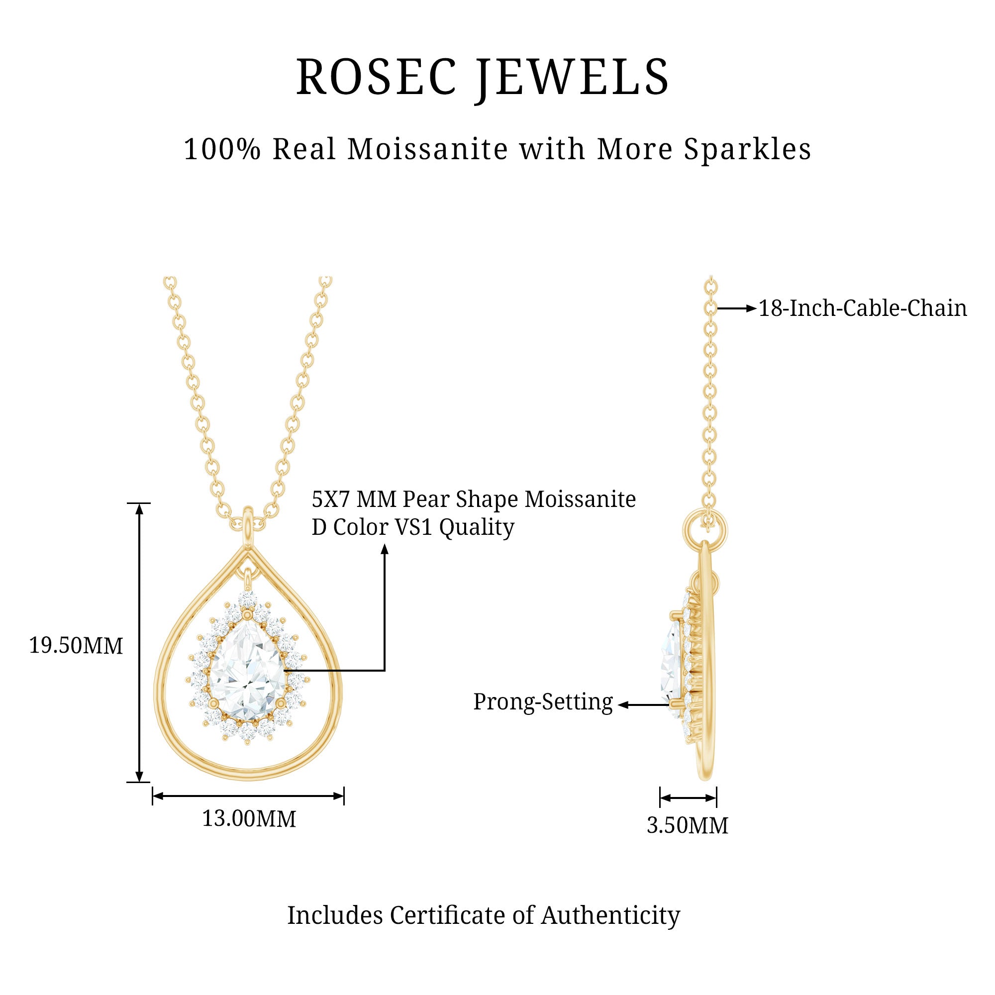 Make sure to elevate your presence on every occasion with our Moissanite Pendant. It is embellished with Pear Shaped Moissanite at the center encircled by Round Moissanite creating a sparkling halo frame. Whether a casual fit or formal wear embrace yourself with the radiant sparkle of D-VS1 Quality Moissanite making this Drop Pendant Necklace a wonderful birthday gift for your beloved. This Teardrop Pendant is crafted precisely for your special day and will be delivered to you in a classic jewelry box for storage.