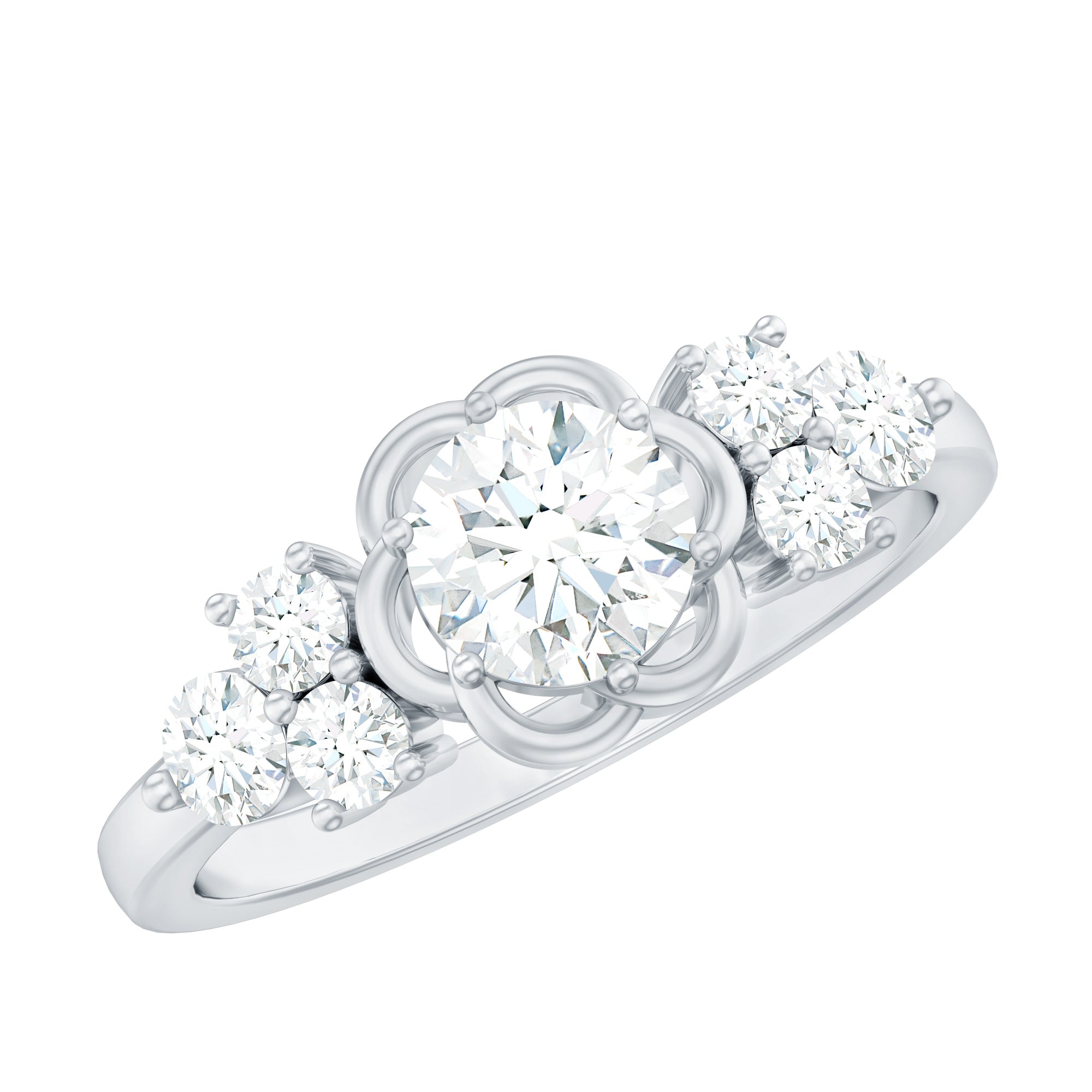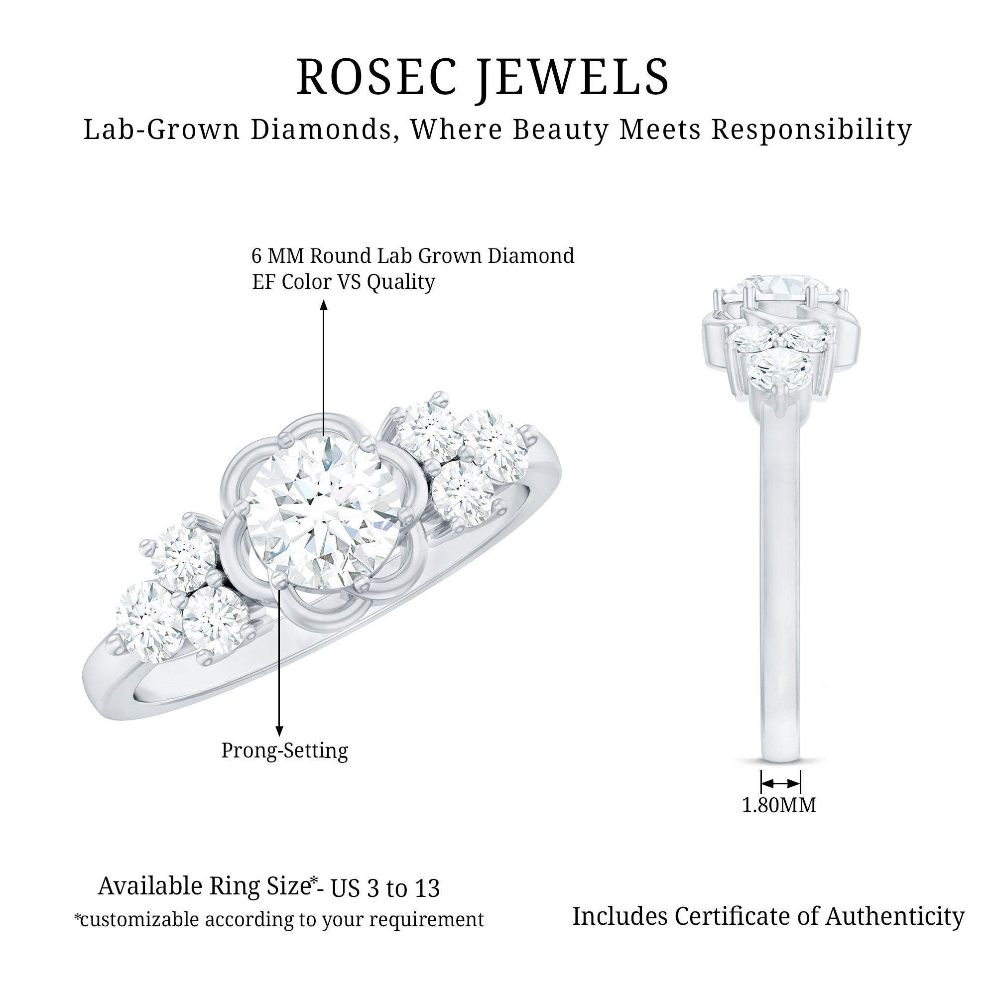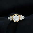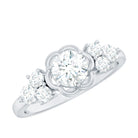 With a unique and romantic design this Lab Grown Diamond Ring has floral patterns that evokes a sense of timeless romance. Contributing to its uniqueness this Flower Diamond Ring captures the essence of personal style with a romantic choice as a symbolic love and its story. This ring is embellished with 6 MM Round Shaped Lab Grown Diamond in Prong Setting with a beautiful floral frame. The Trio of Diamond gemstones on either side adds extra texture to pop the center gemstone. Having a striking yet elegant design this Diamond Engagement Ring is a beautiful and one-of-a-kind piece. This ring has EF-VS Quality Lab Diamond which is the ultimate symbol of commitment and eternity.