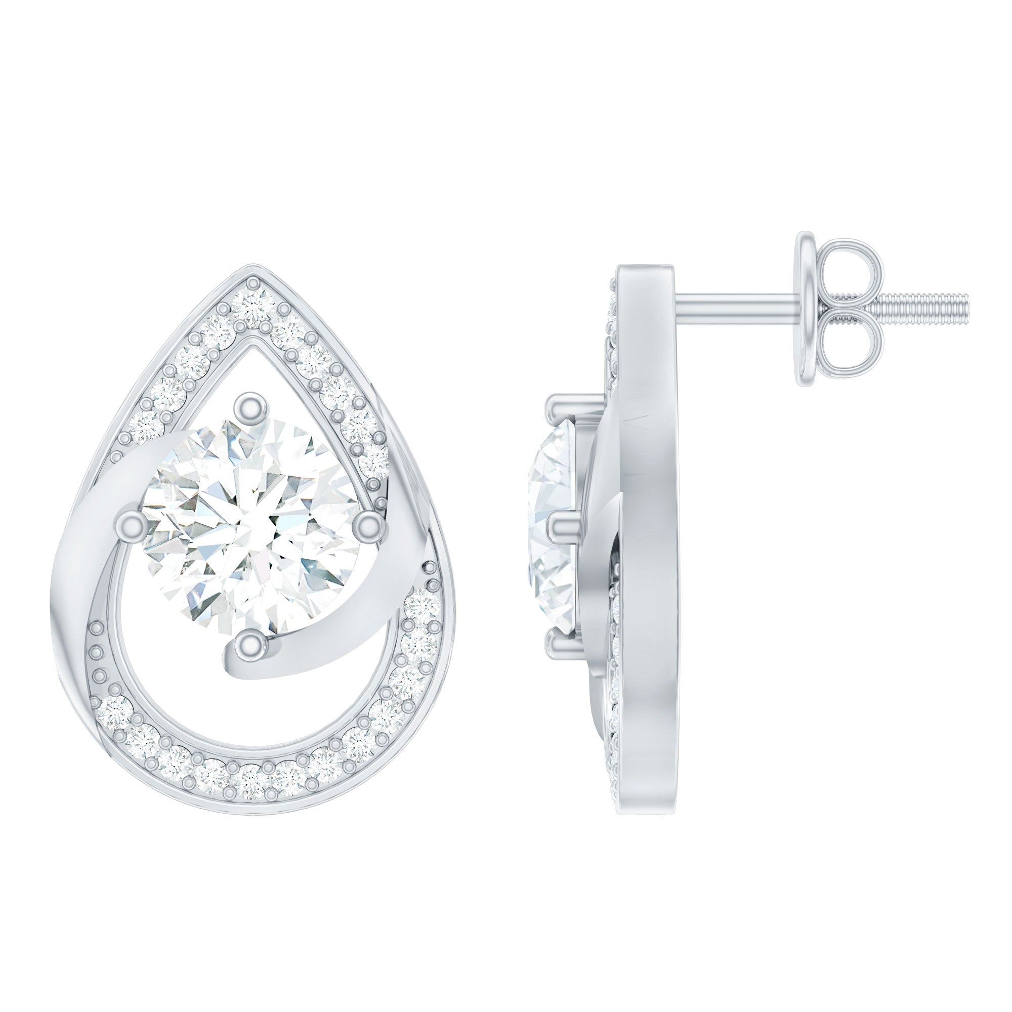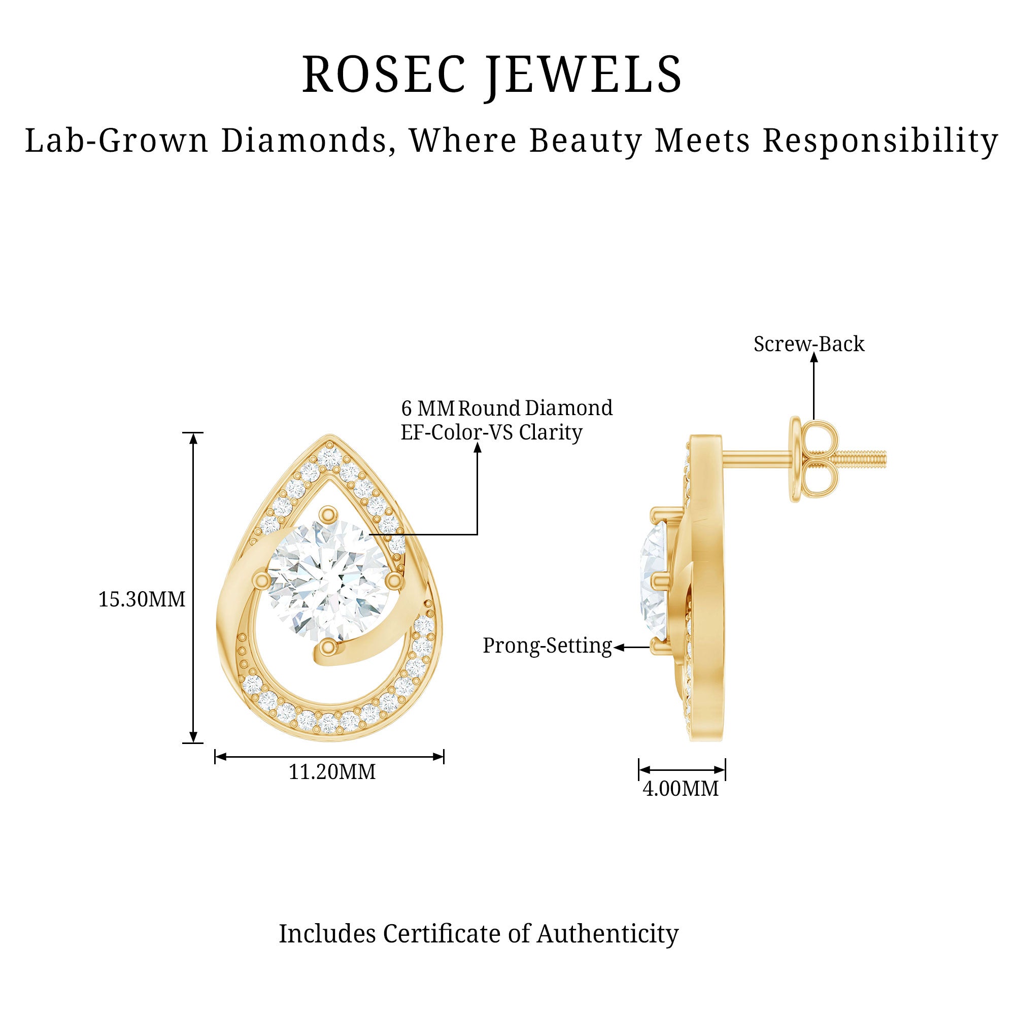 Experience timeless beauty with these exquisite Teardrop Earrings. Meticulously handcrafted, they feature a stunning 6 MM Round Shape Diamond set in a secure prong setting as the centerpiece. The elegant Teardrop design, enhanced by sparkling round cut diamond gemstones, adds a layer of sophistication, while the Screw Back Closure guarantees a snug fit. Perfect for any occasion, these Lab Grown Diamond Earrings are sure to draw attention. Gifting these Diamond Stud Earrings to the special woman in your life is a wonderful way to show your affection. With their beautiful and classy design, these Pear Shaped Earrings make a bold statement about your style, and if you were born in April, these studs are an ideal match for your personality.