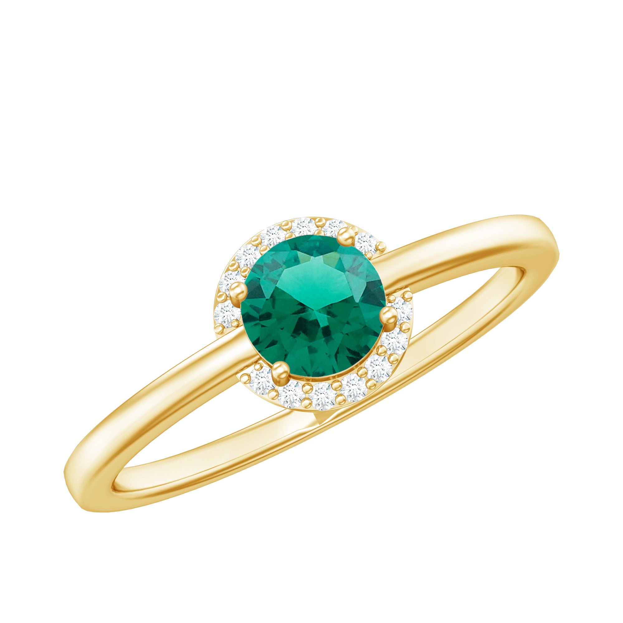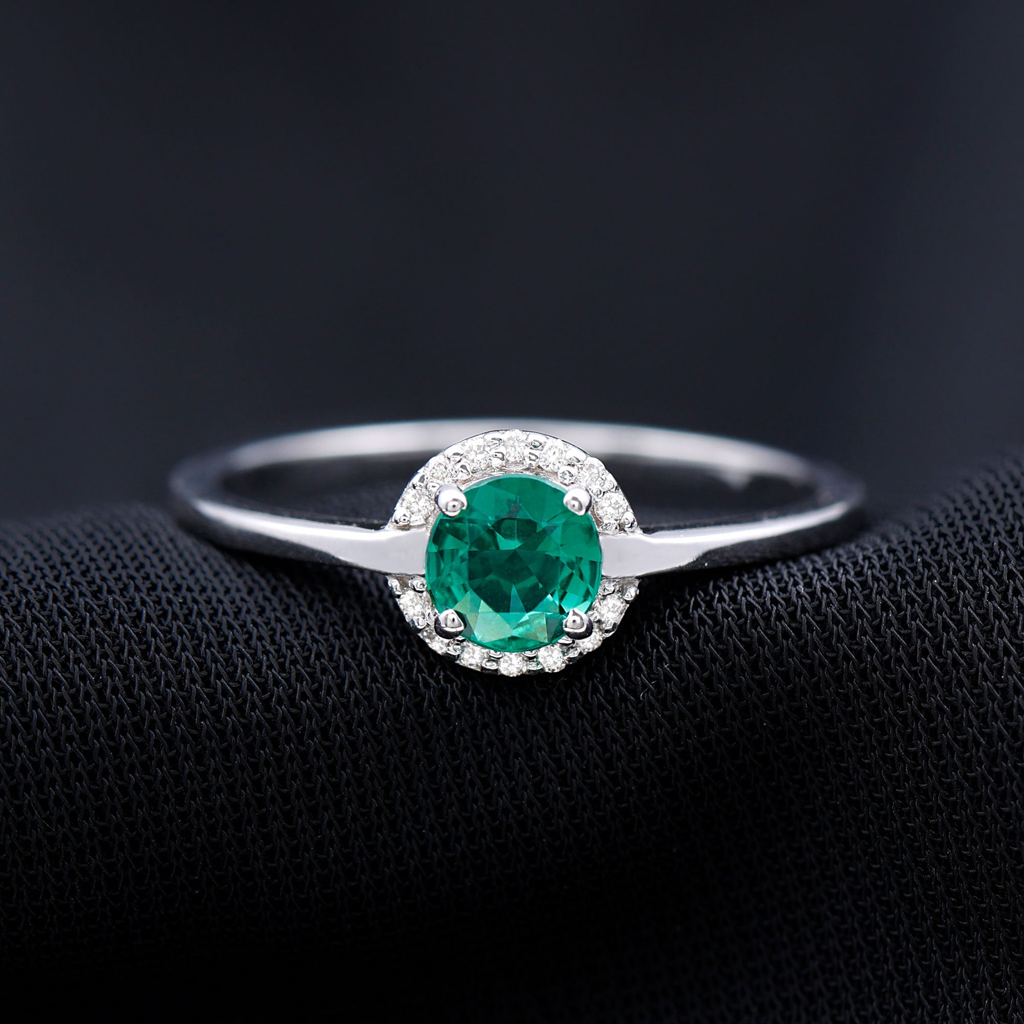 Certified 6 mm Lab Grown Emerald Promise Ring with Diamond Halo
