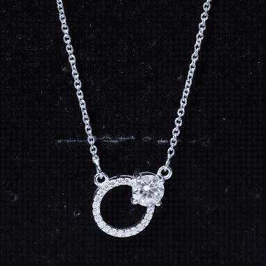 Certified 6 MM Round Moissanite Circle Necklace in Silver