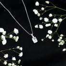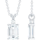 Certified 6X8 MM Emerald Cut CZ Diamond Solitaire Necklace with Silver Chain