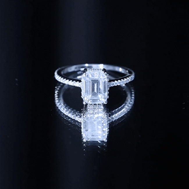 Certified 6X8 MM Moissanite Emerald Cut Engagement Ring