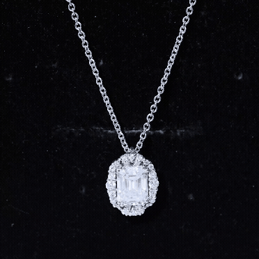 This Moissanite Pendant Necklace is crafted precisely with white gold-plated silver for your special days. The Pendant Necklace features a 6X8 MM Emerald Cut Moissanite secured in a Prong Setting and surrounded with a halo of smaller Moissanites. This Halo Pendant dangles in a sturdy cable chain which makes it beautifully sit on the neckline and can be adjusted as per the choice of your style. This Emerald Cut Pendant will be delivered to you in a Premium quality jewelry pouch for storage, along with the certificate of authenticity.