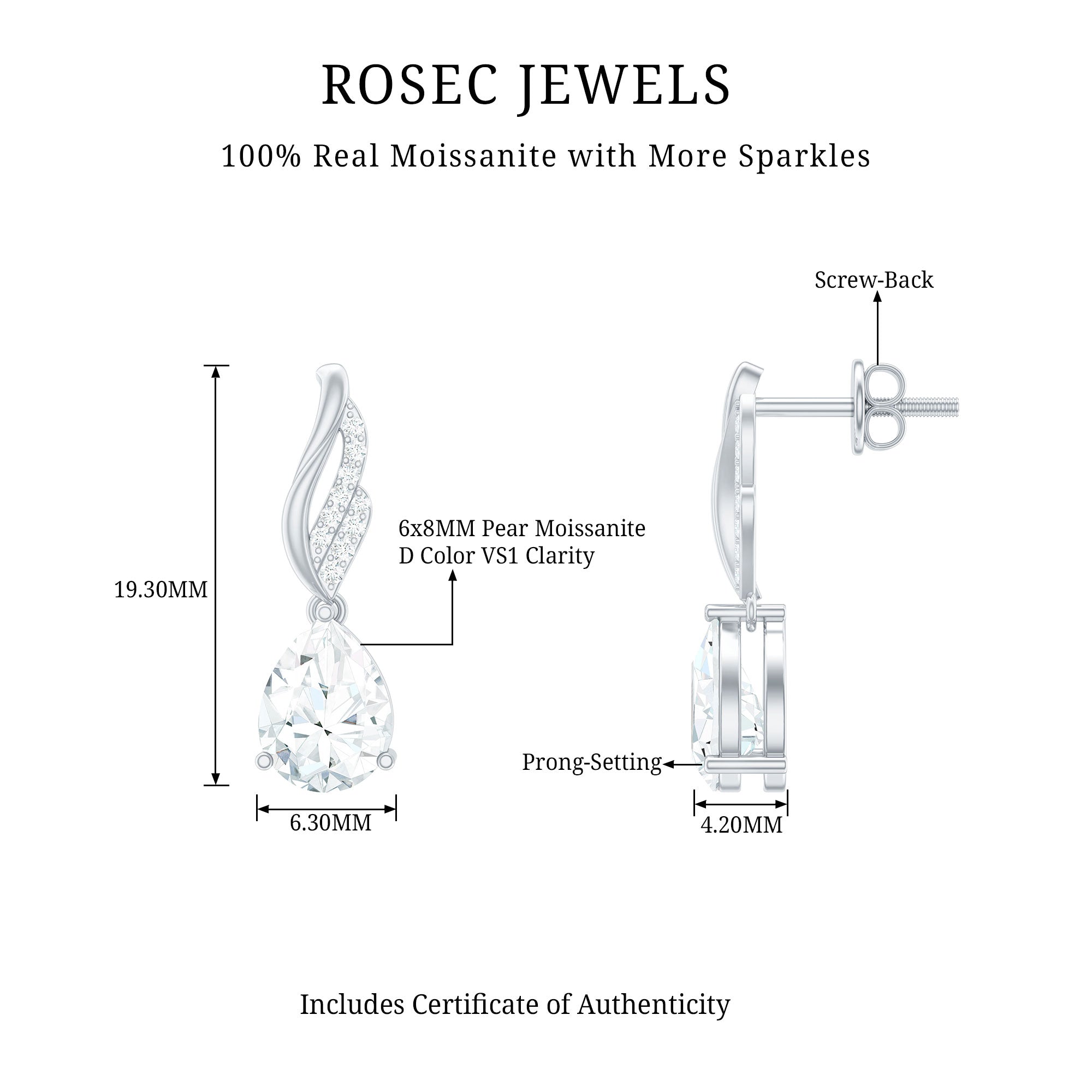 Certified 6X8 MM Moissanite Teardrop Earrings for Wedding