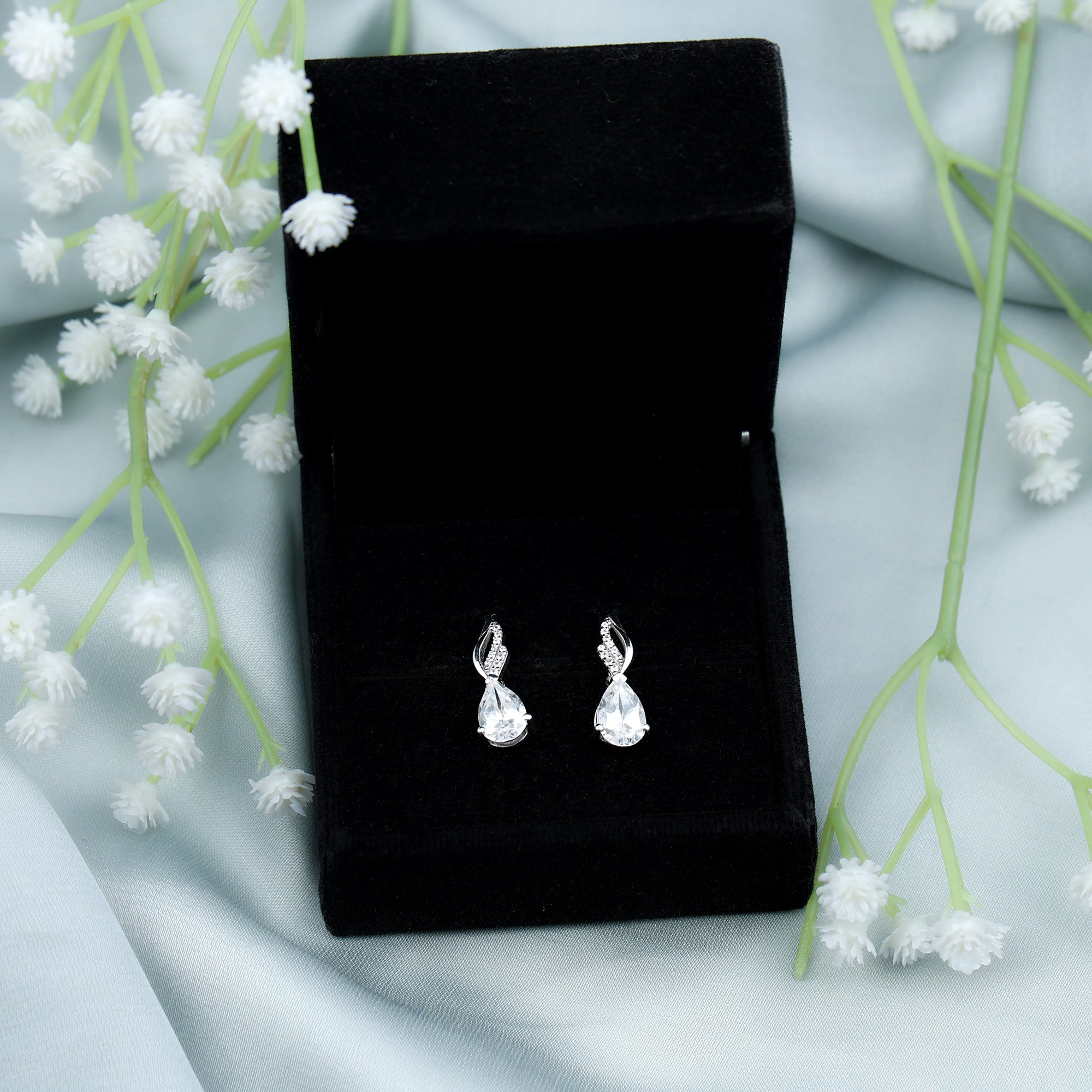 The day of wedding is special, and to make it perfect, wear these Moissanite Drop Earrings that not only complete your look for the day but also give you the confidence while walking down the aisle. These Bridal Earrings feature a leaf-like design partially adorned with smaller Moissanites at the top. The 6X8 MM Pear Shape Moissanite beholds a striking shine which perfectly complements the outfit. The Teardrop Earrings can be presented as a gift to your bride-to-be as a contribution for her D-Day. The Dangling Earrings have Screw Back Closure which keeps them safe and on place throughout the day and they are shipped to you in premium packaging.