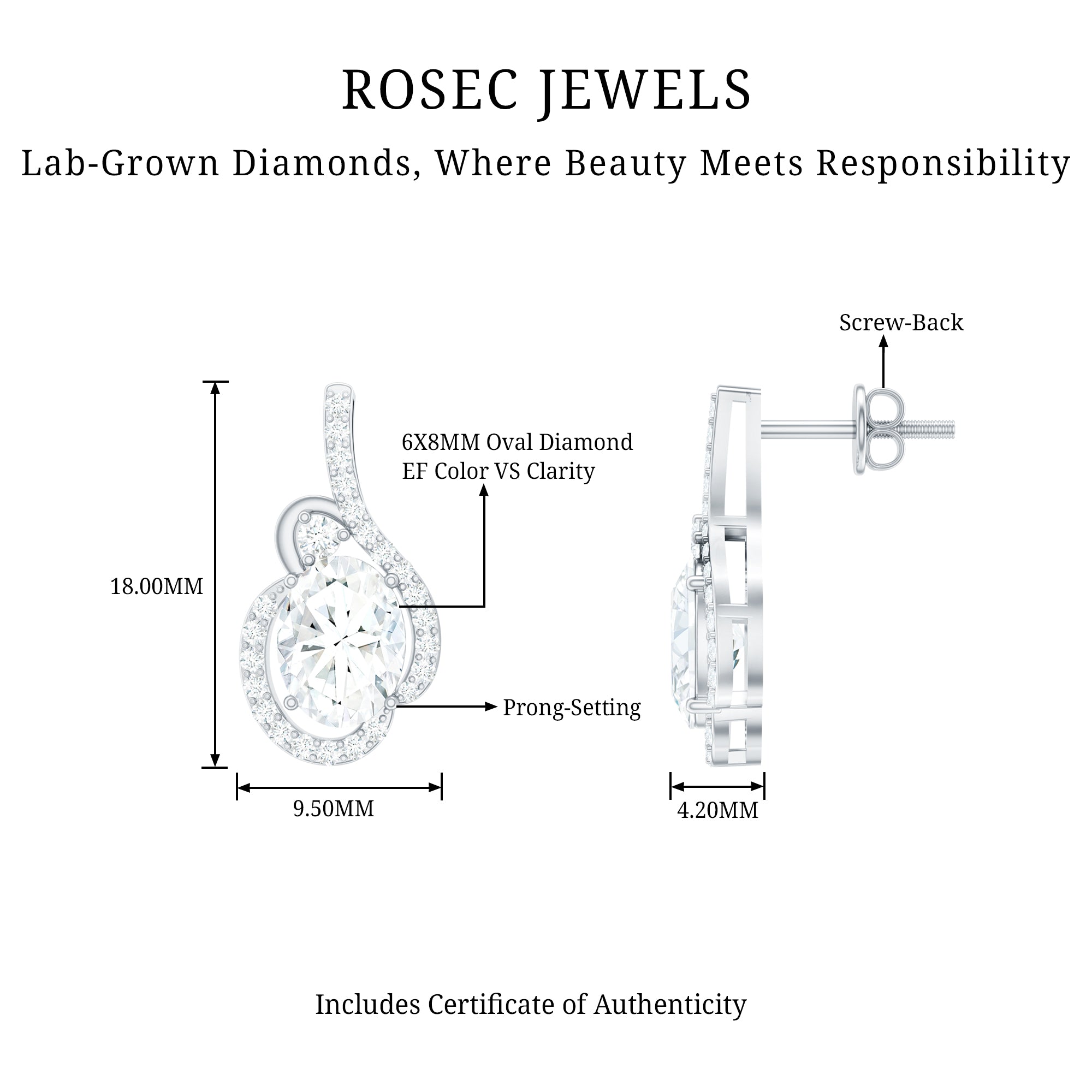 Certified 6X8 MM Oval Lab Grown Diamond Designer Stud Earrings