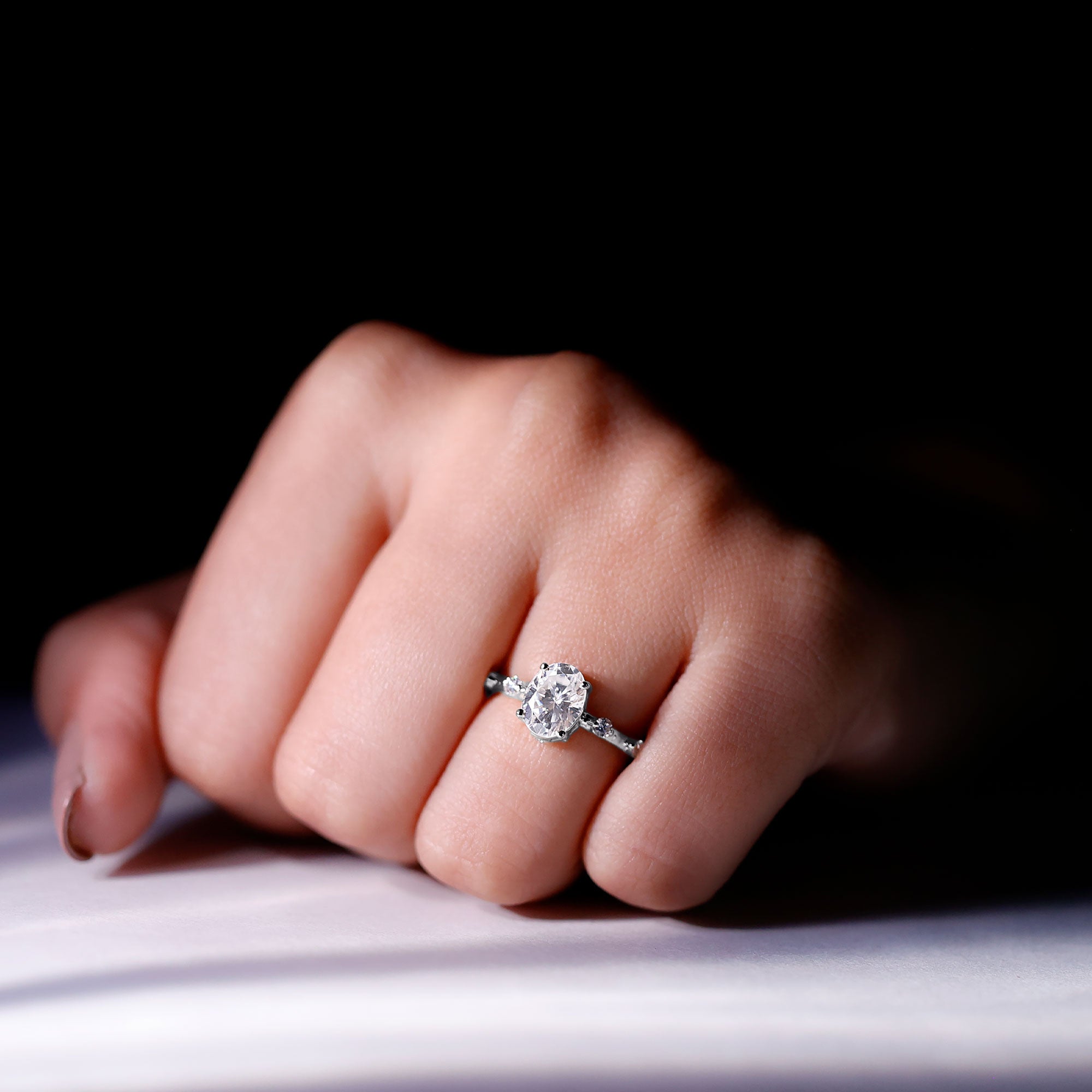 Certified 6X8 MM Oval Moissanite Solitaire Engagement Ring