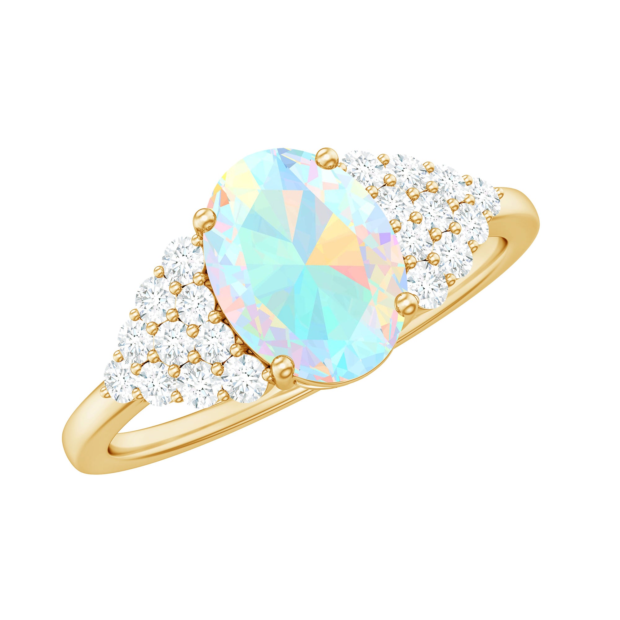 Certified 6X8mm Ethiopian Opal Oval Engagement Ring with Diamond