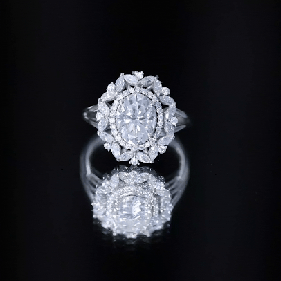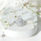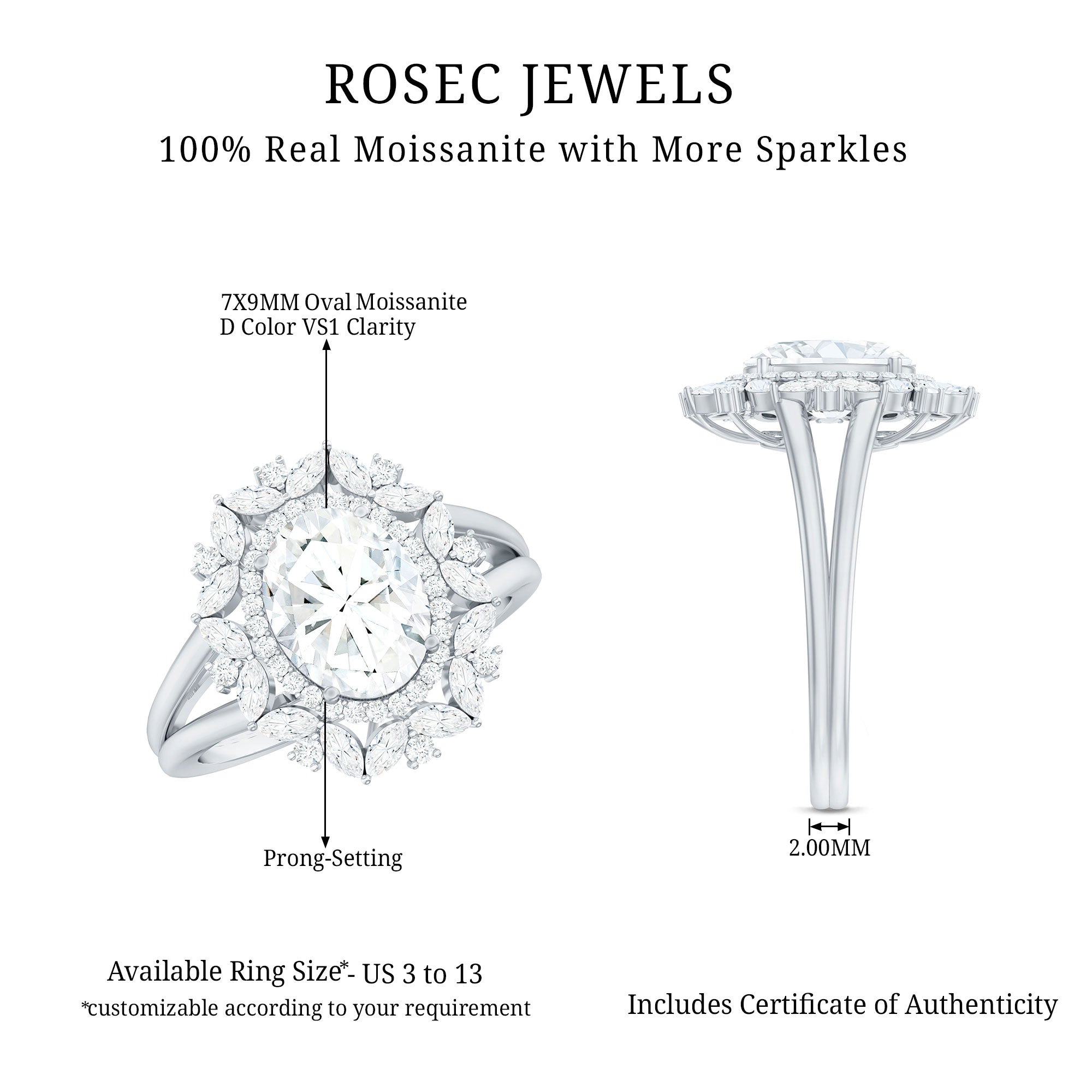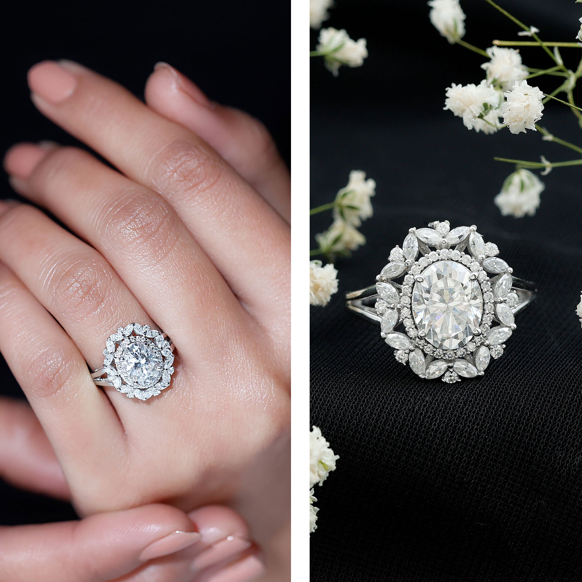 Certified 7X9 MM Oval Moissanite Double Halo Engagement Ring