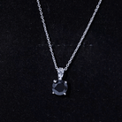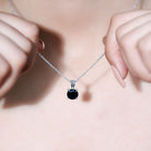 Make a special place in her heart when you present this Black Diamond Pendant to her. This Solitaire Pendant Necklace is crafted with an 8 MM round shaped lab grown black diamond of AAAA quality set securely in prong setting and dangling from a cable chain. The Black Stone Pendant is handcrafted in 14K White Gold Plated Silver and further adorned with a unique bail at the top, making it more eye-catching. Not only does this pendant necklace exude luxury, but it also reflects a conscious choice, handcrafted with lab grown black diamond, it is eco-friendly and affordable. If you are looking for something classic and timeless piece of jewelry, this is the perfect pendant to celebrate your love.