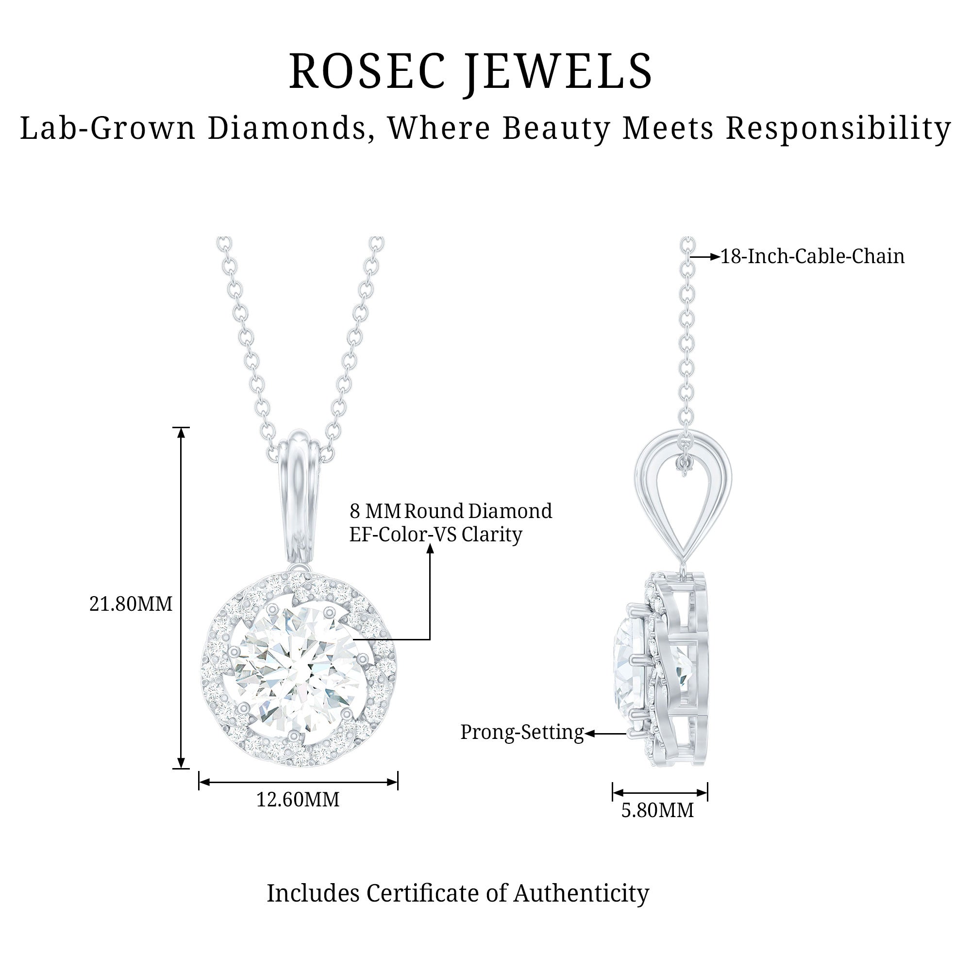 Certified 8 MM Lab Grown Diamond Halo Necklace