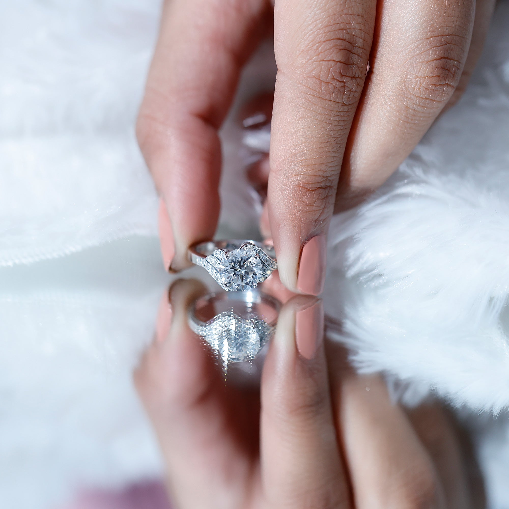 Seal the deal with a Designer Diamond Ring that screams passion, sparkle, and happily ever after. This Solitaire Engagement Ring is designed with lab grown gemstone, an 8 mm round shape diamond is set in the center with multiple curved rows of round diamonds on either side. The prong set focal stone and plain band give this 2 Carat Diamond Engagement Ring a timeless feel while the smaller stones on it add a designer touch. Whether you are proposing, celebrating a milestone, or simply making a grand gesture, this Round Shaped Ring is one shell never forget. No matter what youre attending, a glamorous evening dinner, or a festive celebration, it will ensure you shine with confidence and style.