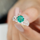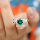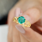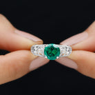 Certified 8 mm Lab Grown Emerald Antique Engagement Ring