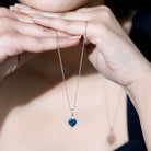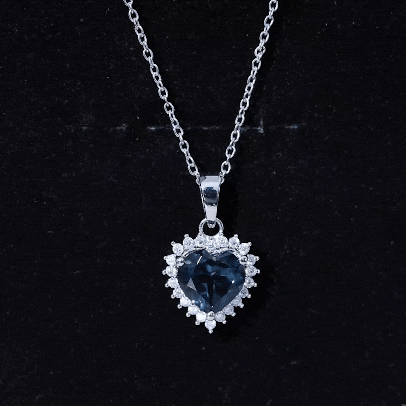 Get her this London Blue Topaz Pendant and witness a priceless reaction. The pendant is crafted with 14K White Gold Plated Silver and features an 8 MM Heart Shape London Blue Topaz securely placed in Prong Setting and encircled by a Halo of Moissanite stones. The pendant dazzles with a classic shine of AAA Quality London Blue Topaz and D-VS1 Quality Moissanite. This Heart Pendant is accentuated with a standard bail and dangles with a sturdy cable chain, which makes it beautifully sit on the neckline. This Halo Pendant will be shipped to you in a premium quality velvet pouch with a certificate of authenticity.