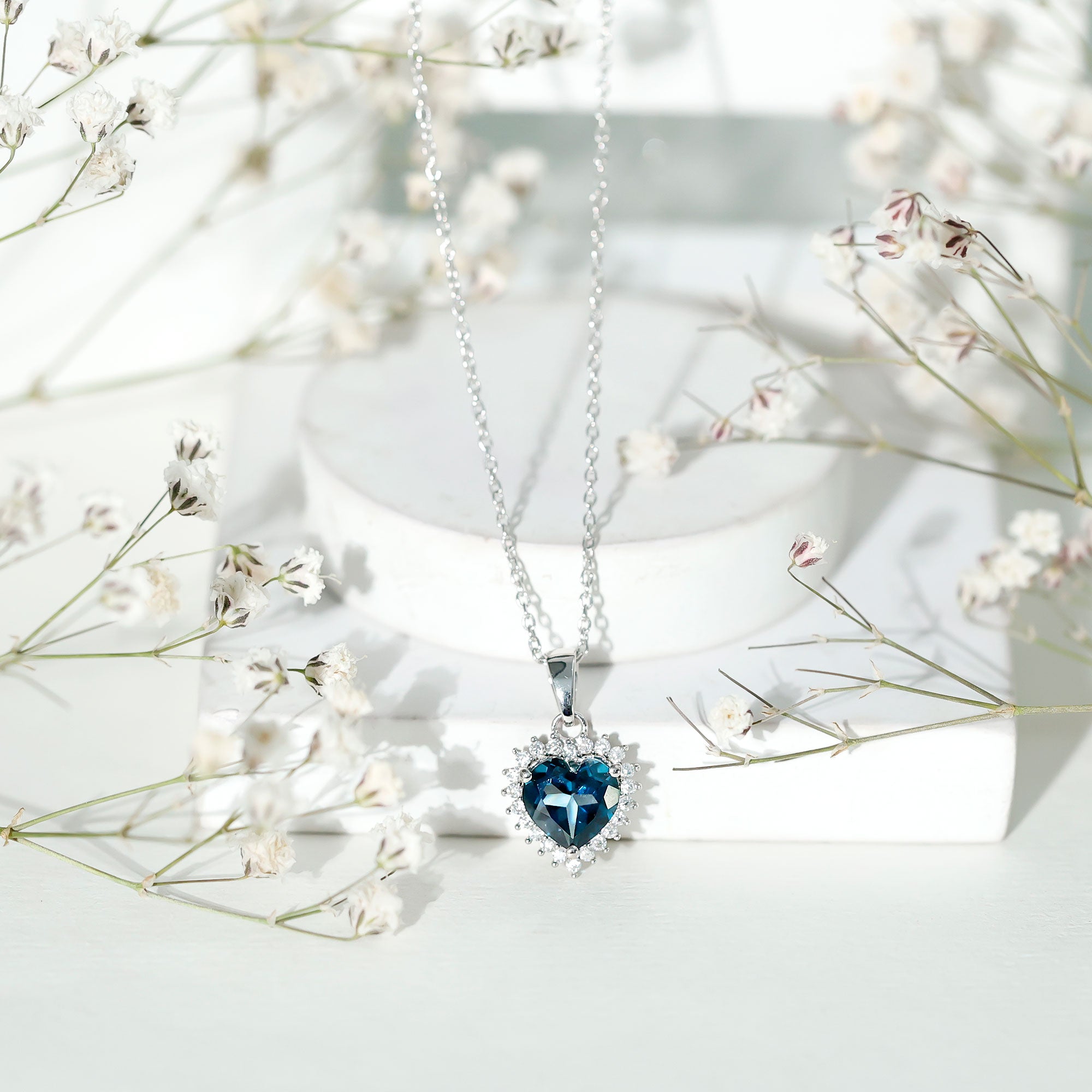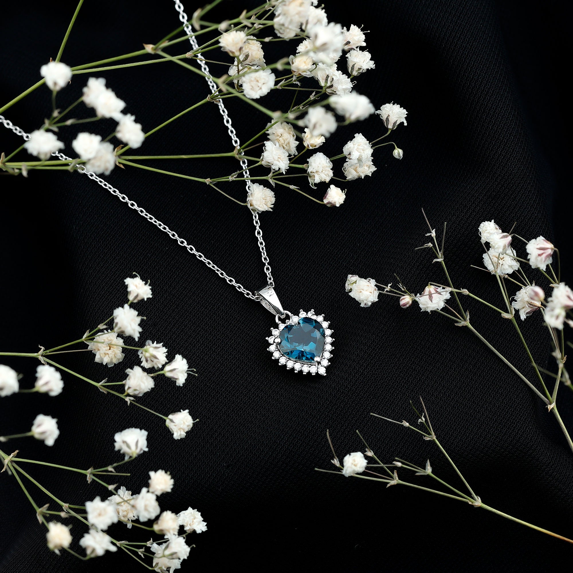 Certified 8 MM London Blue Topaz Heart Pendant with Moissanite Halo
