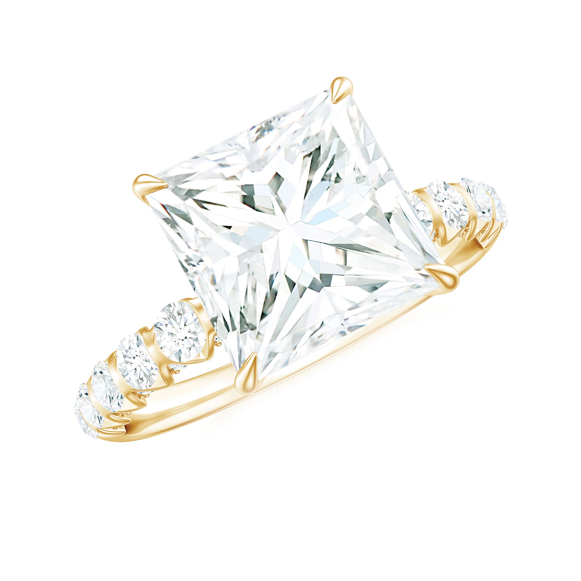 Make your proposal unforgettable with this enchanting Moissanite Ring from Rosec Jewels. A stunning 8 MM princess-cut Moissanite stone takes center stage, nestled in a gleaming claw setting and surrounded by sparkling side stones. This Solitaire Ring has a total weight of 4 carats, with a high-quality D color and VS1 clarity, making it truly remarkable. All of our gemstones are certified and subject to rigorous quality control, ensuring you receive only the best. Present Princess Cut Ring to her as a symbol of your boundless love. We ensure that your emotions attached to this ring are safe and securely delivered to you, hence we will send this ring in premium quality packaging with the certificate of gemstone authentication.