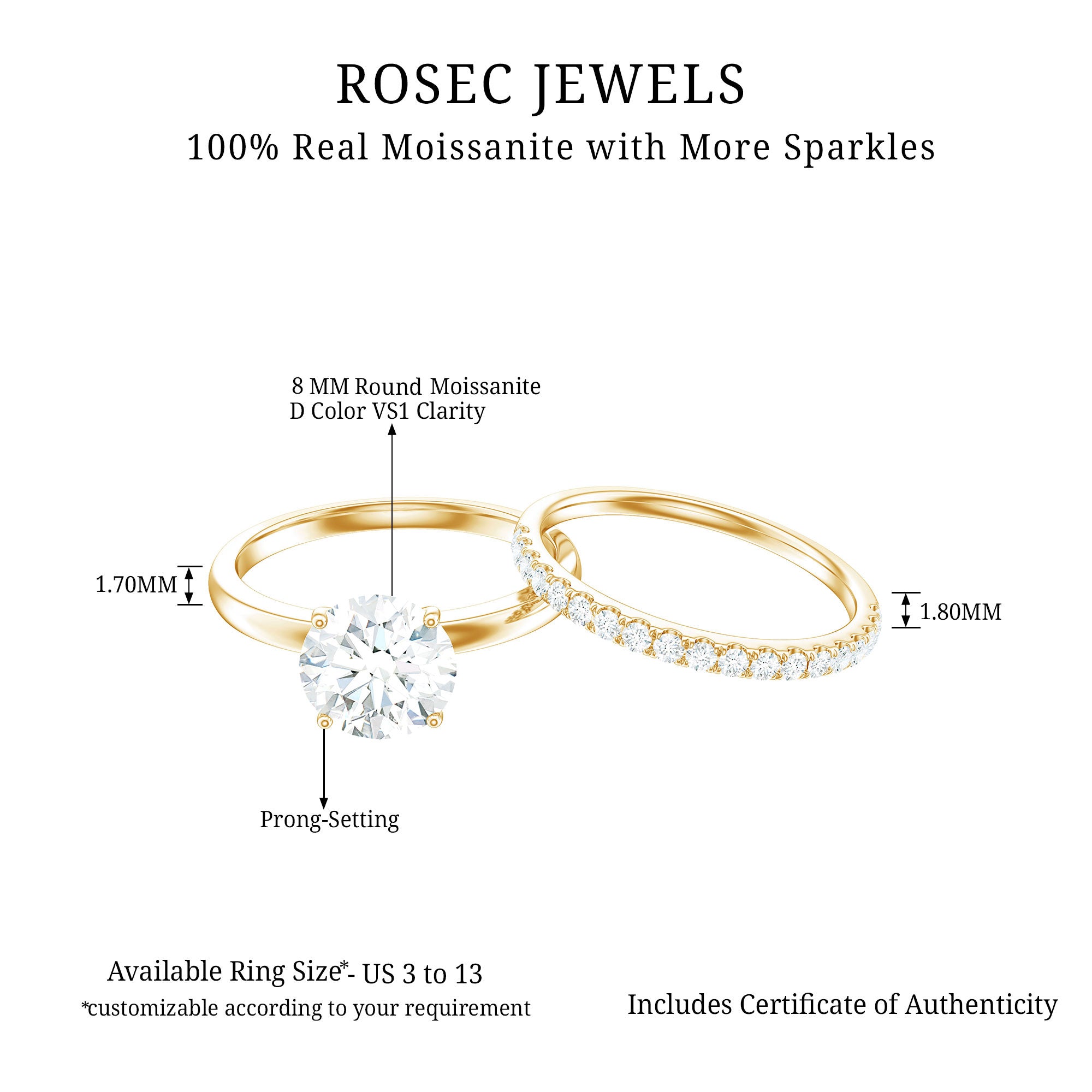 Certified 8 MM Moissanite Solitaire Wedding Ring Set in Gold Plated Silver