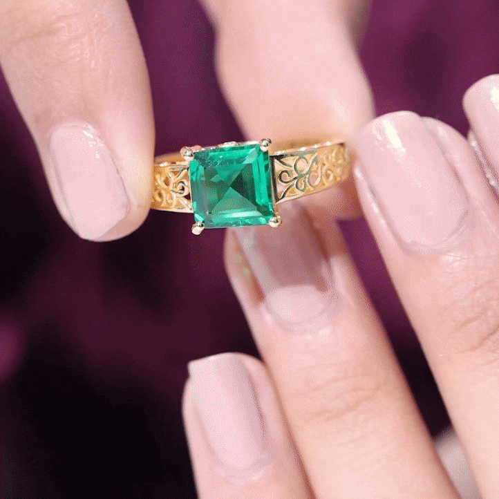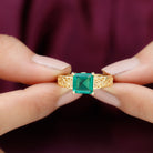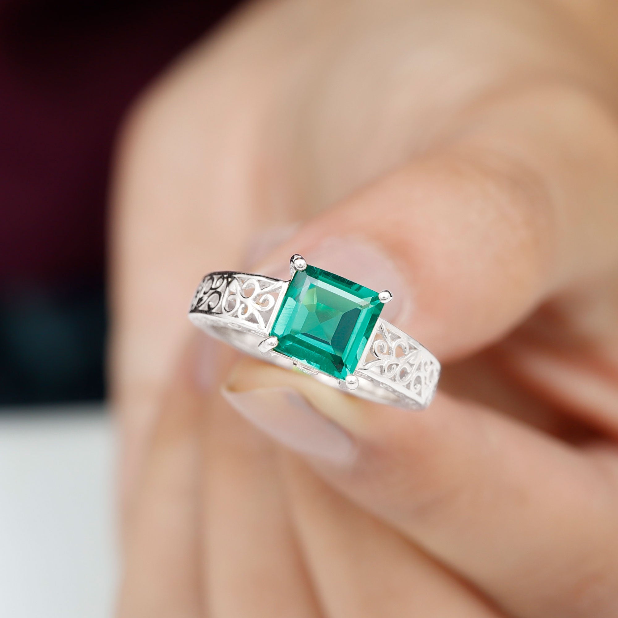 A symbol of love, commitment and a promise for the future, this Filigree Engagement Ring is the perfect choice for someone who wants to stand out with elegance and unique charm. At the heart of the design is a vibrant 8 mm Princess Cut Lab Created Emerald of AAAA Quality held in Claw Setting, known for its brilliant green hue and facets that reflect light beautifully. The intricate filigree detailing over the band adds a vintage inspired touch, giving this Princess Cut Engagement Ring a delicate and artistic appearance. What makes this Lab Grown Emerald Ring truly special is the Diamond stone, placed beneath the Lab Emerald, symbolizing the secret strength and depth of your love. This Princess Cut Emerald Ring (Lab Grown) is carefully crafted to combine both timeless and contemporary elements, making it an ideal choice for those who appreciate meaningful design. The classic Princess Cut paired with the elegant Filigree ensures that this Square Engagement Ring will remain stylish for generations to come. Whether you are proposing or celebrating an important milestone, this 2 Ct Emerald Ring is a symbol of devotion and a promise that lasts forever.