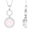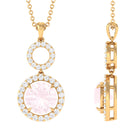 Certified 8 MM Rose Quartz Dangle Necklace With Diamond