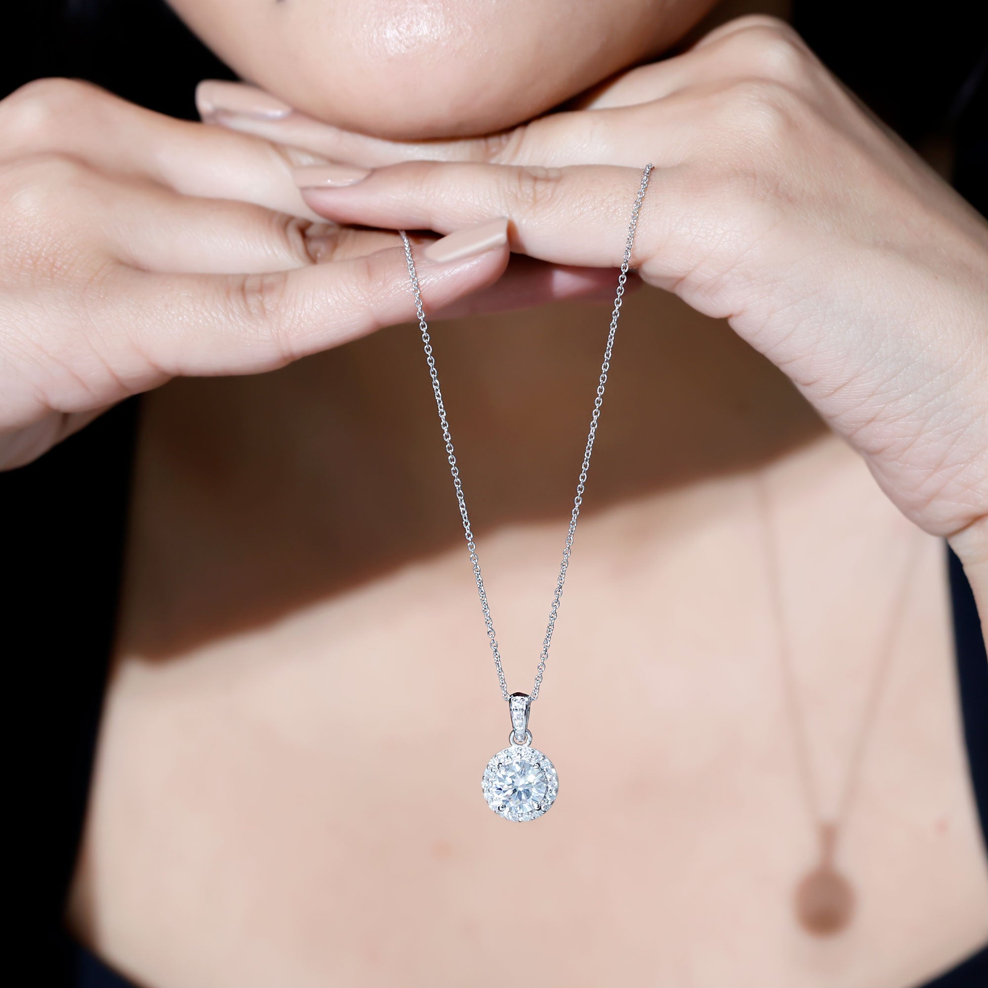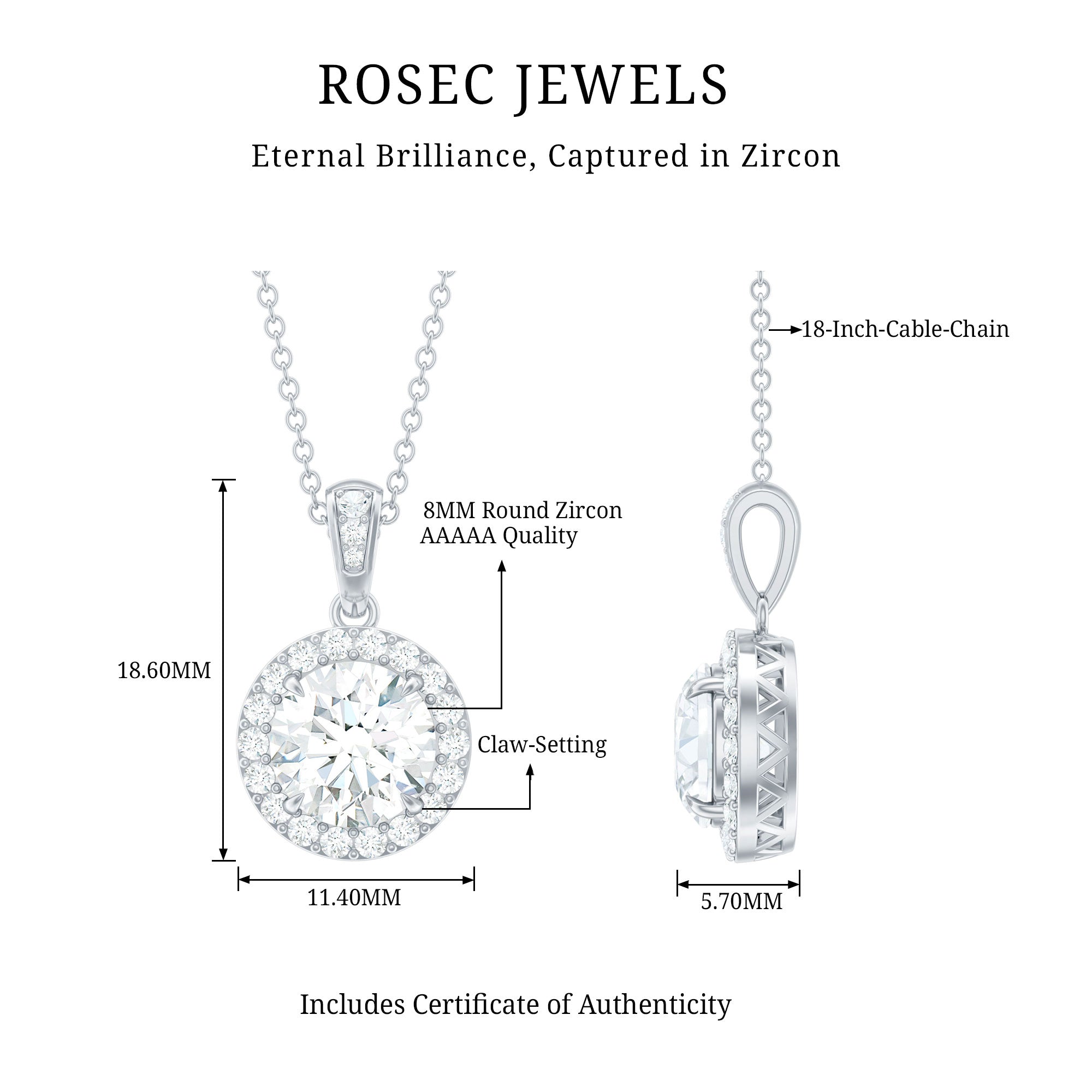 Certified 8 MM Round Cubic Zirconia Halo Necklace with Chain