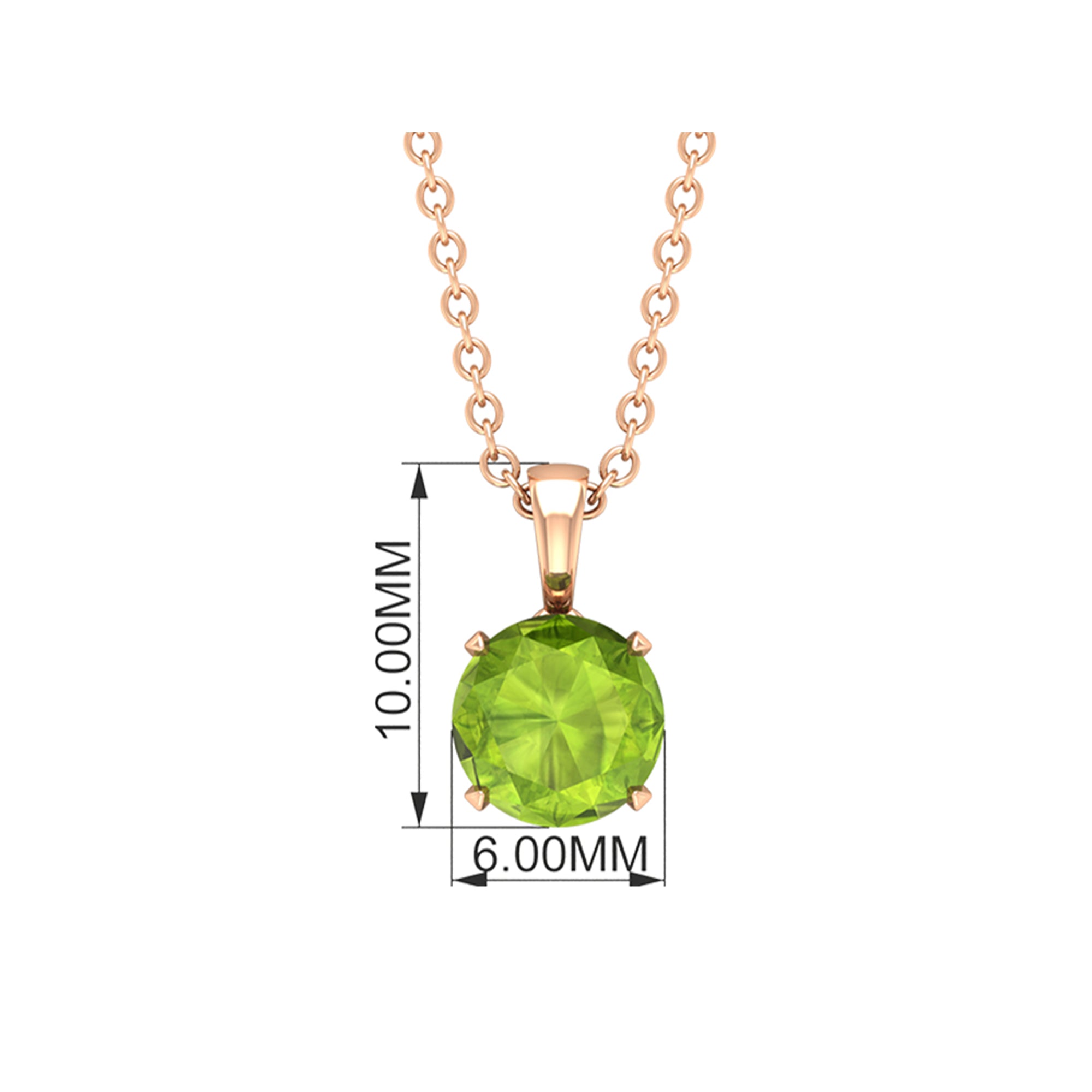 Simple and classy, this Solitaire Necklace embellished with a stunning 8 MM round cut peridot of AAA Quality weighs 2 carats, and is set in a secure 4-prong setting. Dangling from a sturdy bail, the Green Gemstone Necklace adds a touch of sophistication. Handcrafted in high Quality metal by our expert artisans, it is a timeless statement of luxury. Whether youre dressing up for a special occasion or adding a hint of elegance to your everyday attire, this Peridot Pendant is the perfect accessory to celebrate your love. Dont miss the chance and add our classic jewelry pieces to your collection today.