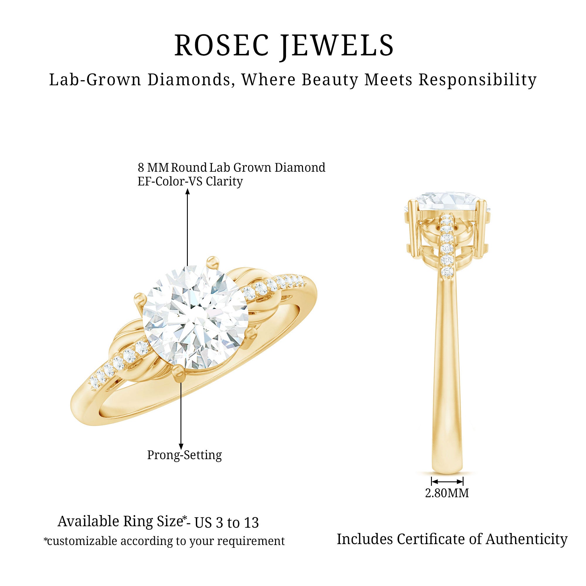 Certified 8 MM Round Lab Grown Diamond Unique Engagement Ring