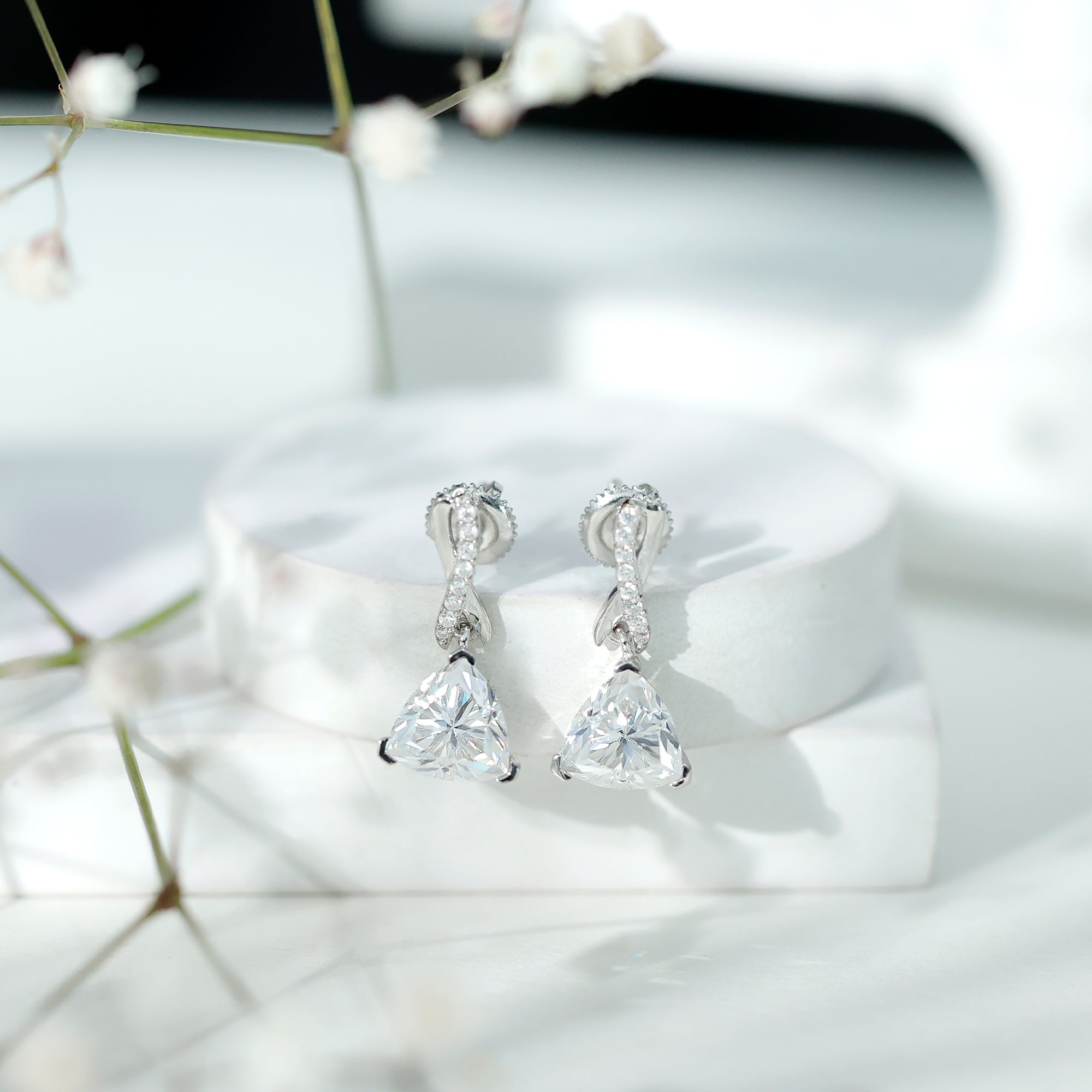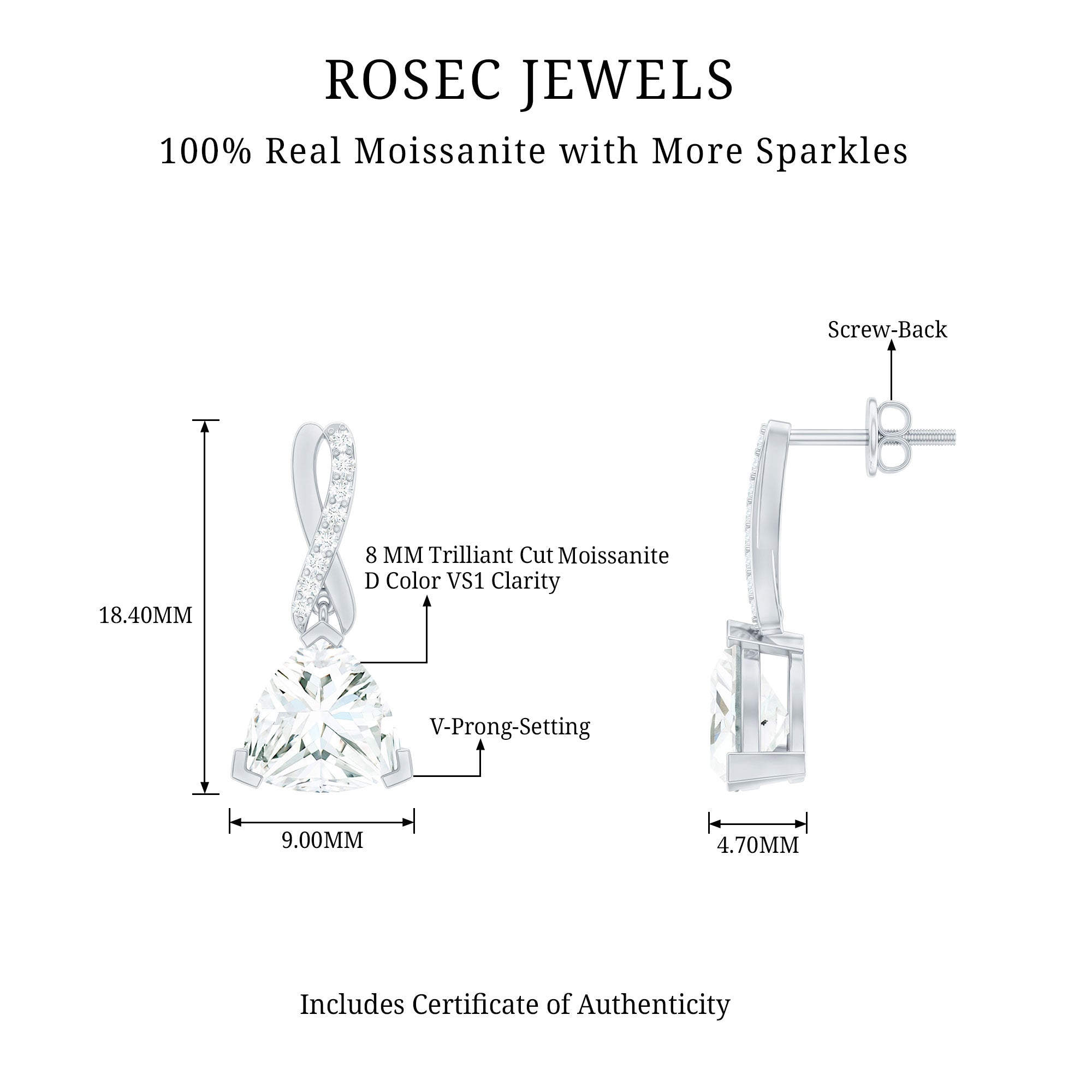 Certified 8MM Trilliant Cut Moissanite Infinity Drop Earrings