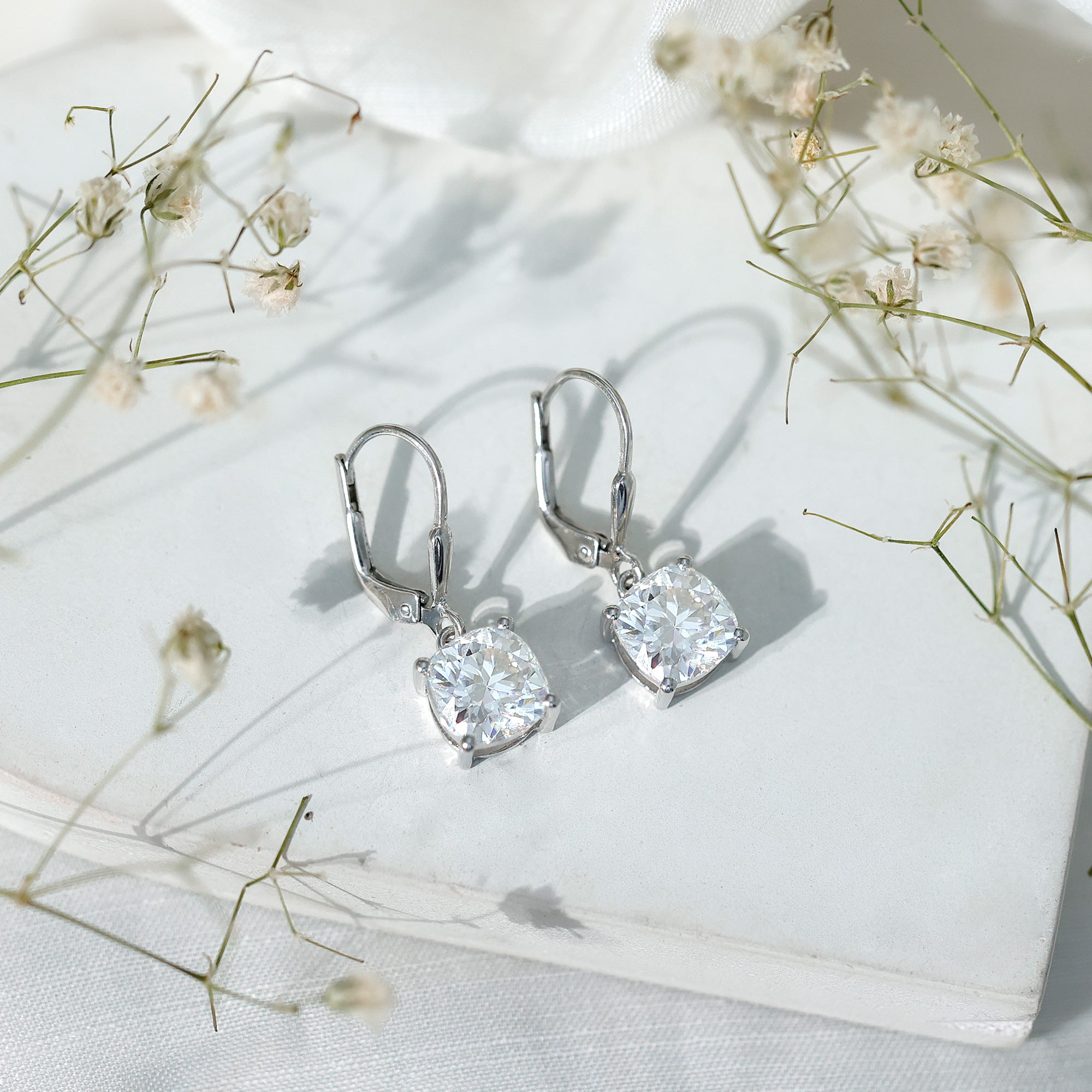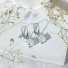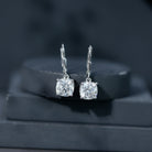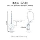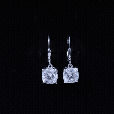 Certified 8mm Cushion Cut Moissanite Drop Earrings in Silver