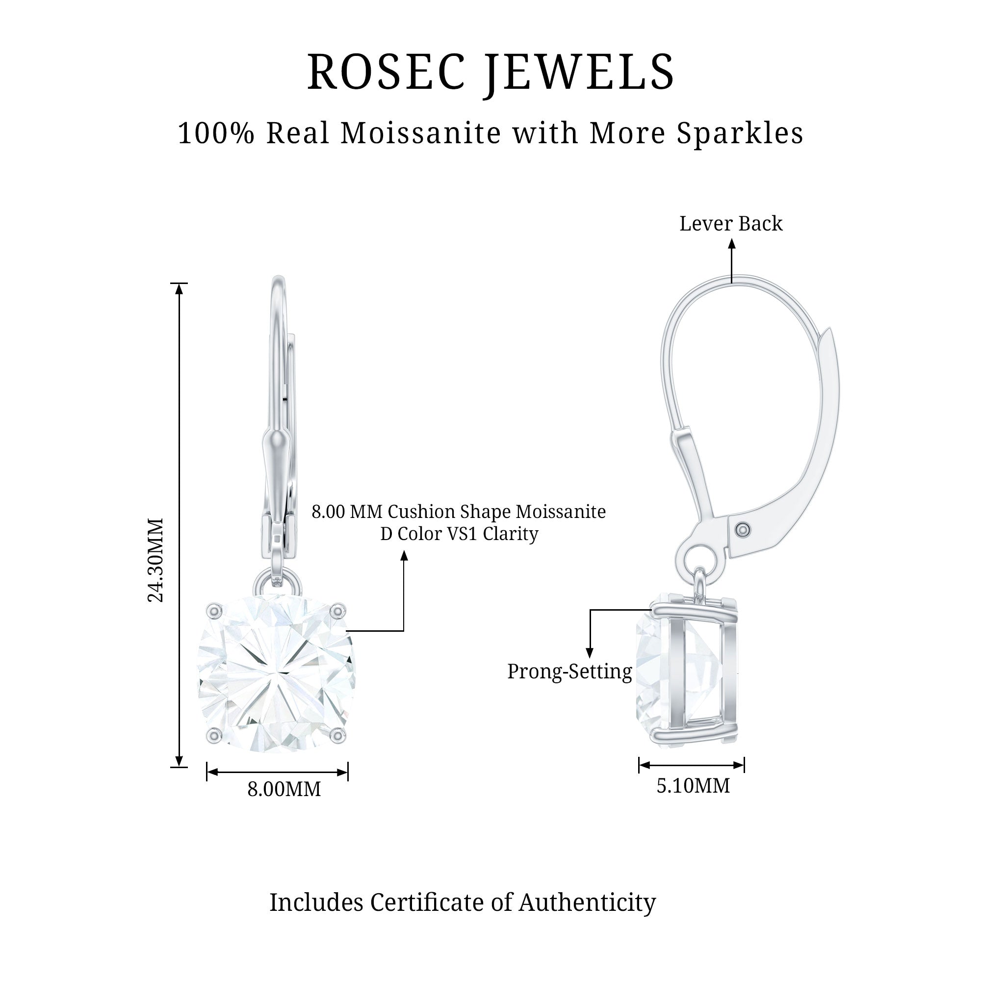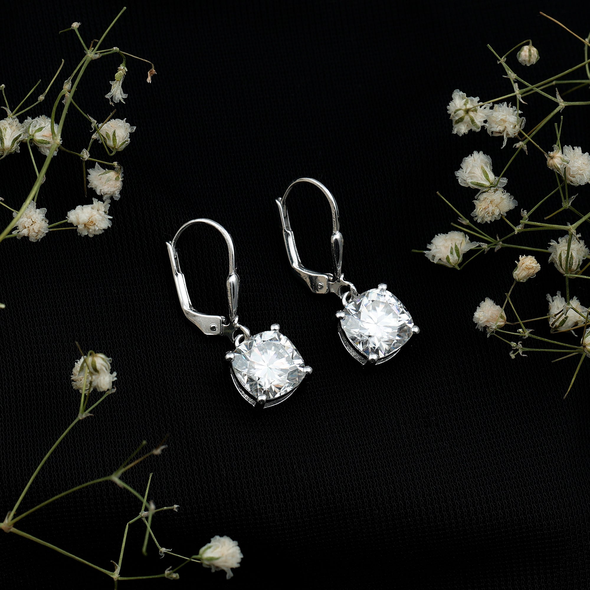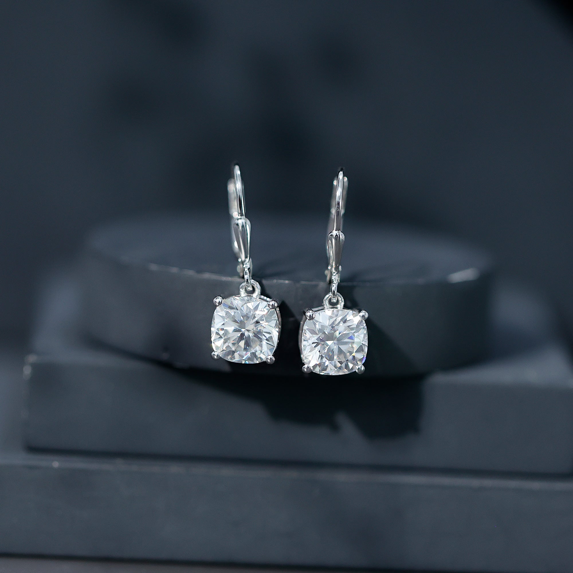 Captivate hearts with these dazzling Moissanite Drop Earrings, a timeless blend of sparkle, elegance and effortless style. Crafted in 925 Sterling Silver, each earring features an 8 mm Cushion Cut Moissanite stone in 4 Prong Setting that catches the light with every step, creating a radiant glow that feels both modern and classic. The secure Lever Back Closure ensures comfort and confidence from morning to night. Whether you are dressing up for a special event or elevating a simple outfit, these Hoop Drop Earrings add the perfect touch of shine without overpowering your style. These Sterling Silver Moissanite Earrings pair beautifully with everything from office outfits to everyday wear, making them a versatile favorite in any jewelry collection. Presented in a charming jewelry box, these Moissanite Earrings are ready to gift for Christmas, Mothers Day, birthdays or any moment you want to make unforgettable.