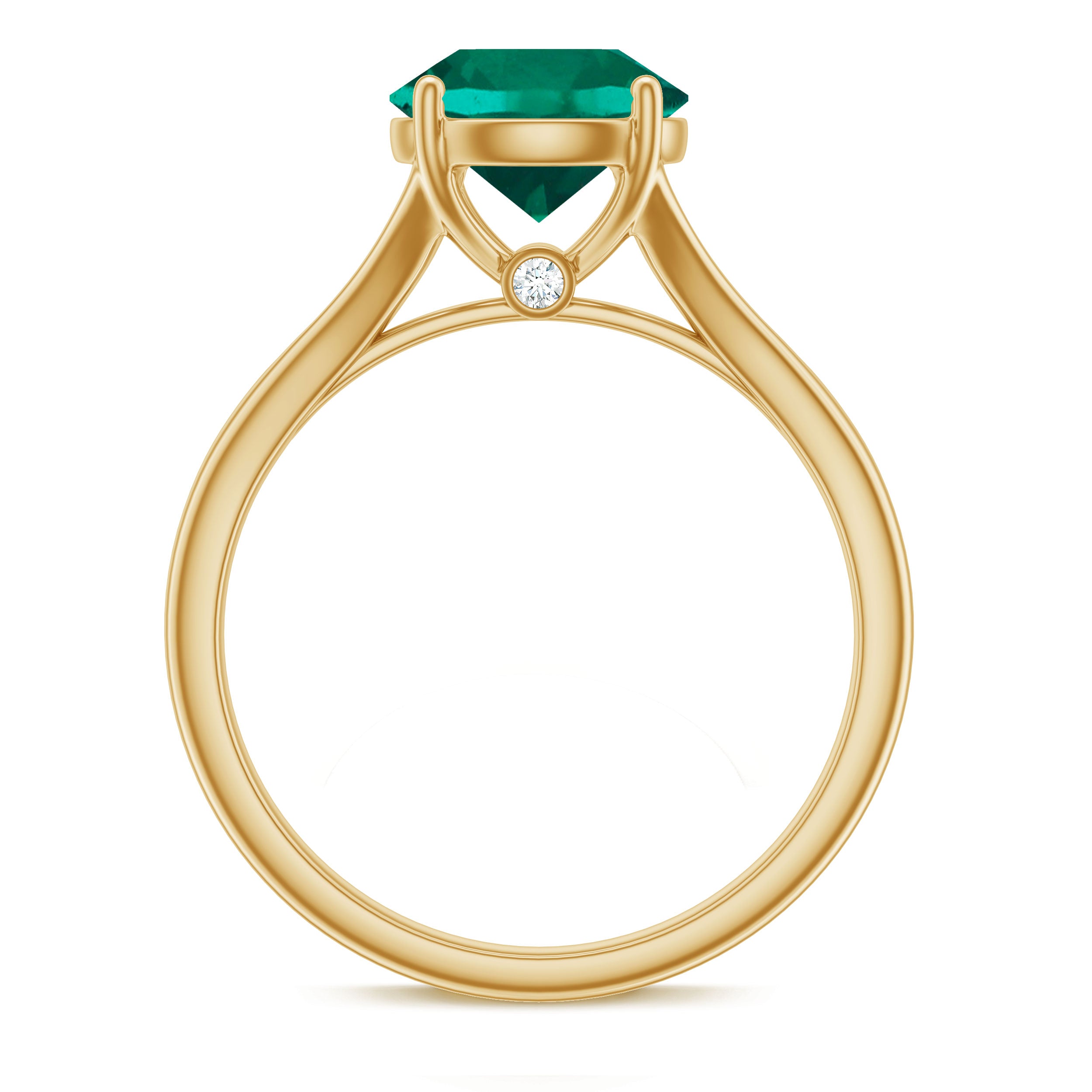 Let your love shine as brilliantly as this Solitaire Engagement Ring. Crafted to capture hearts, this Fine Ring features a mesmerizing 8 mm Lab Created Emerald set in Prong Setting as a centerpiece. The elegant Split Shank design gracefully wraps around the center stone, giving this Lab Grown Emerald Ring a modern look while drawing attention to the stunning emerald. What makes this Split Shank Engagement Ring truly special is two Diamond stones placed beneath the center stone, an intimate secret that sparkles subtly, representing the depth and mystery of your unique bond. This thoughtful detail adds a layer of meaning that makes this Lab Emerald Diamond Engagement Ring beautiful and deeply personal. Perfect for those who appreciate both classic elegance and contemporary design, this Lab Created Emerald Ring is handcrafted to highlight the brilliance of the AAAA Quality Lab Emerald while offering a comfortable fit. Whether it is for a proposal or a celebration of lasting love, this 2 Ct Emerald Ring stands as a statement of commitment and timeless style. Packaged in an elegant jewelry box, this mesmerizing ring is ready to become a treasured part of your love story. A bold yet graceful choice for a forever promise.