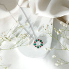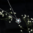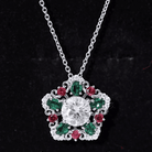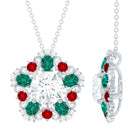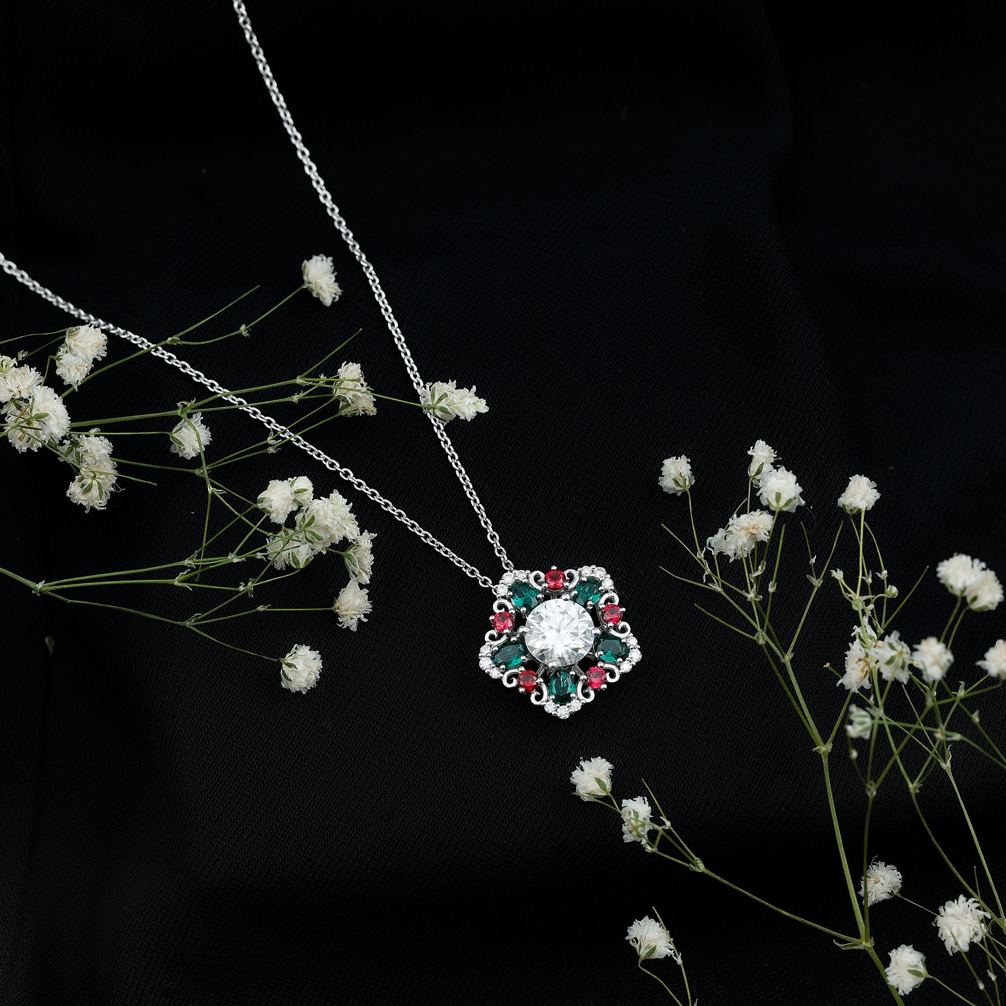 Certified 8MM Moissanite Vintage Flower Necklace with Lab Ruby and Emerald