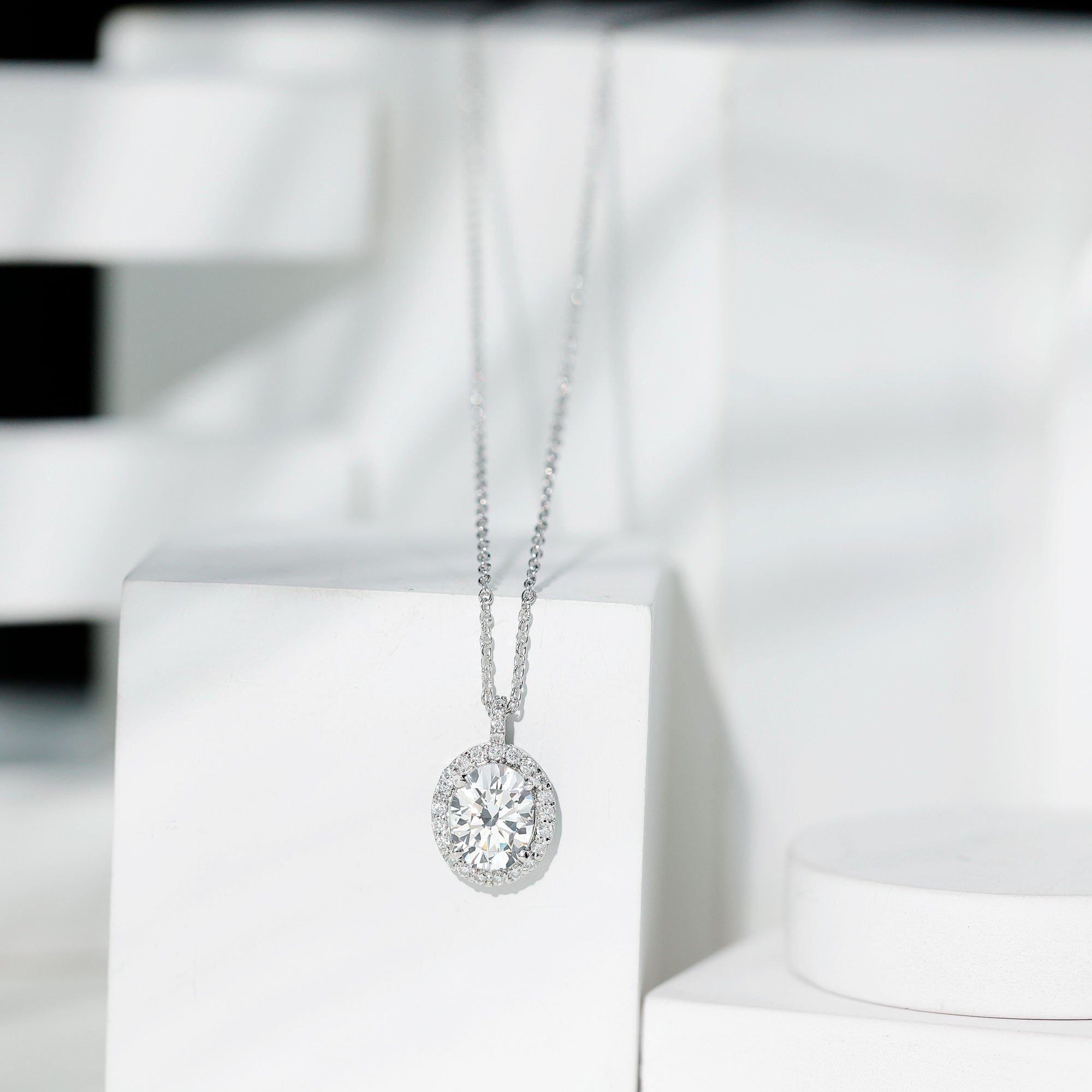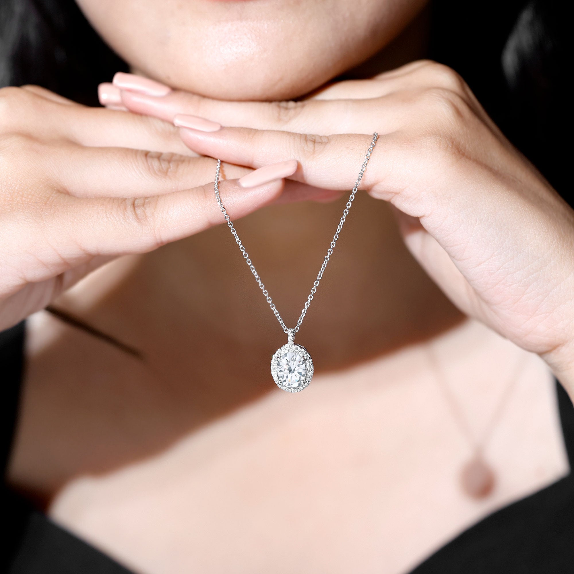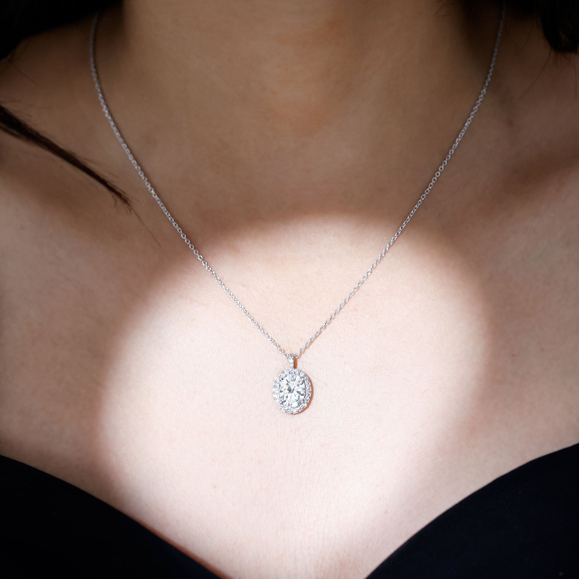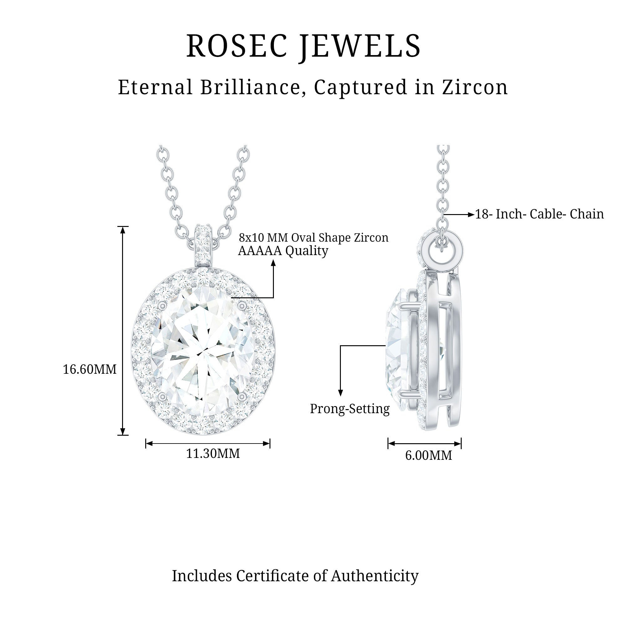 Certified 8X10 MM Oval Cubic Zirconia Halo Pendant with Chain