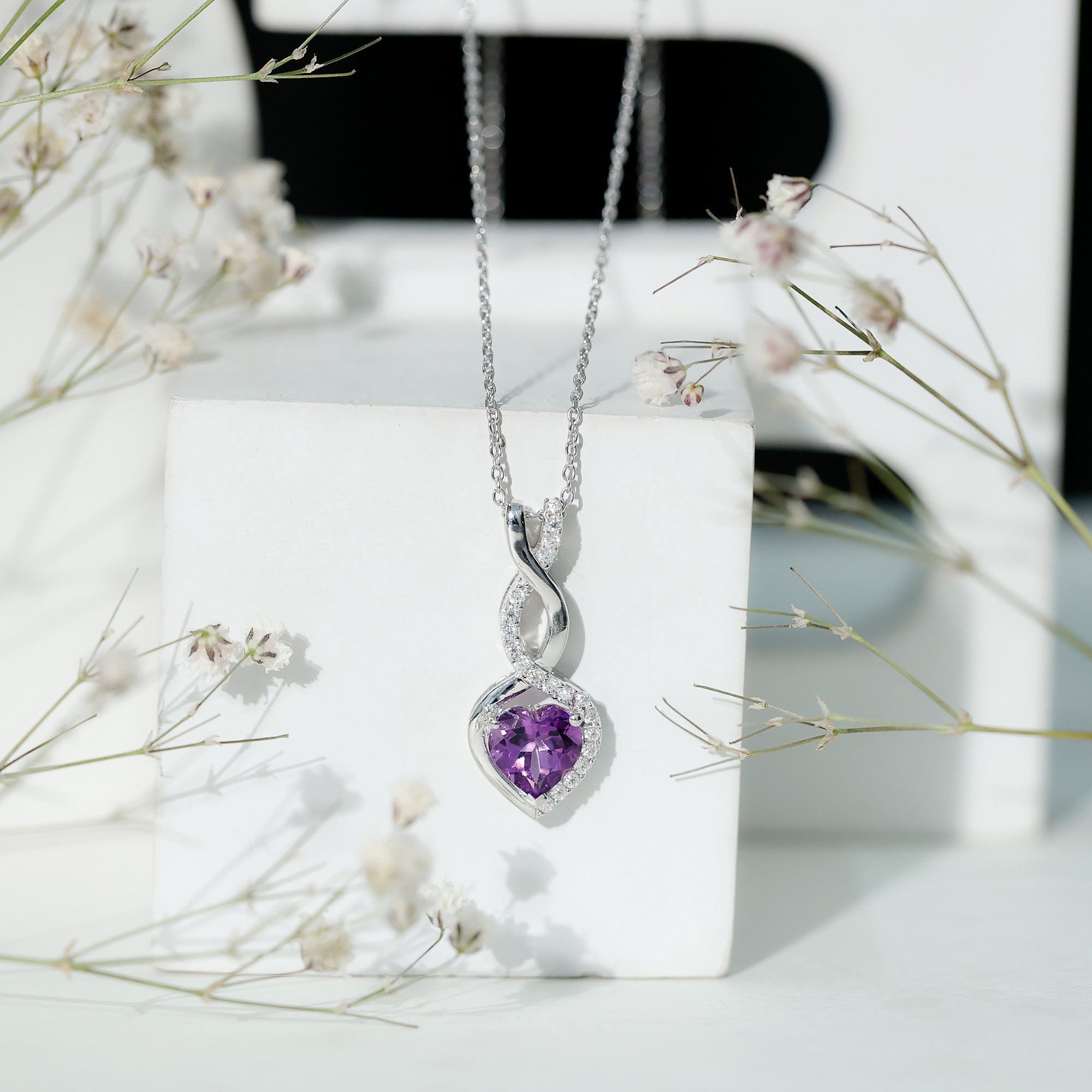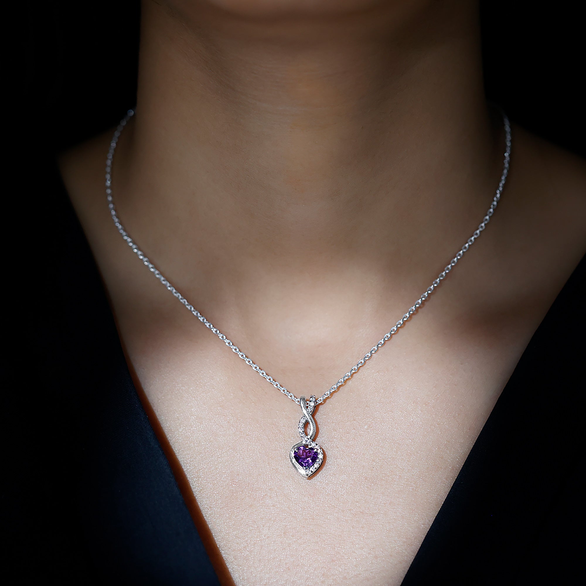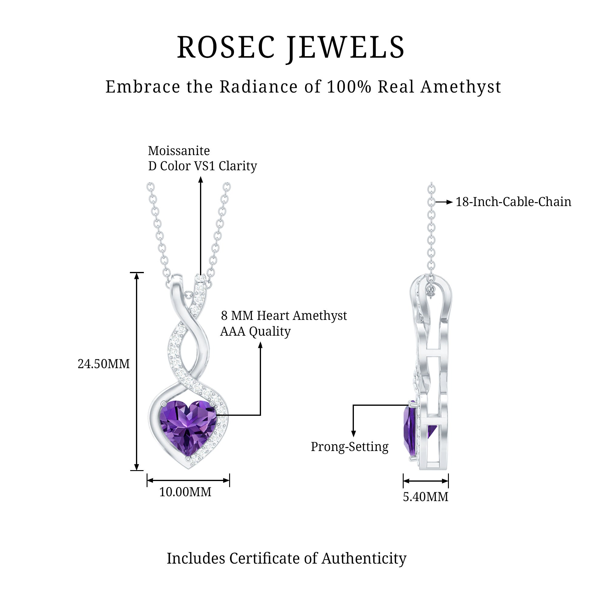 Certified Amethyst and Moissanite Infinity Heart Necklace