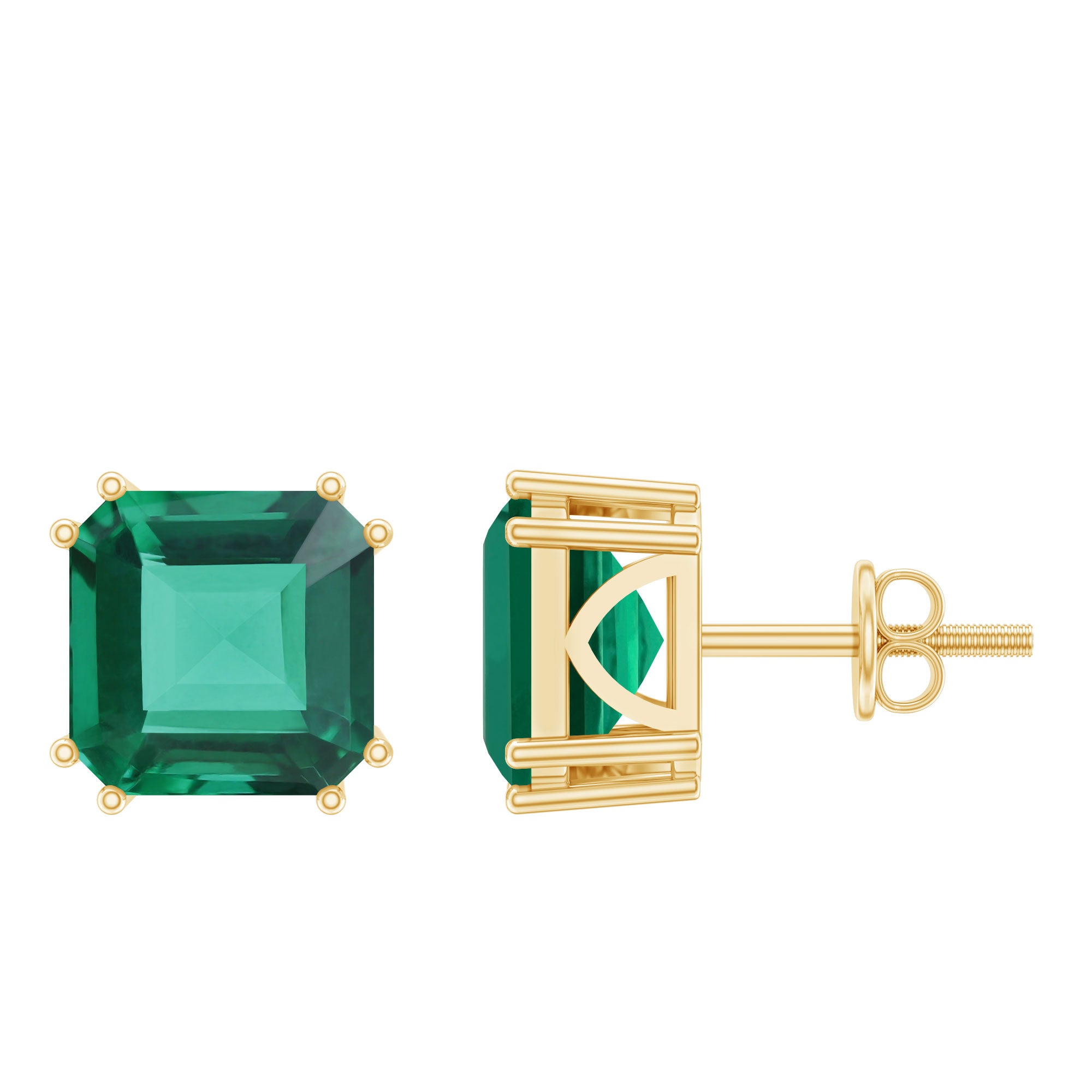 Certified Asscher Cut Lab Grown Emerald Stud Earrings in Double Prongs