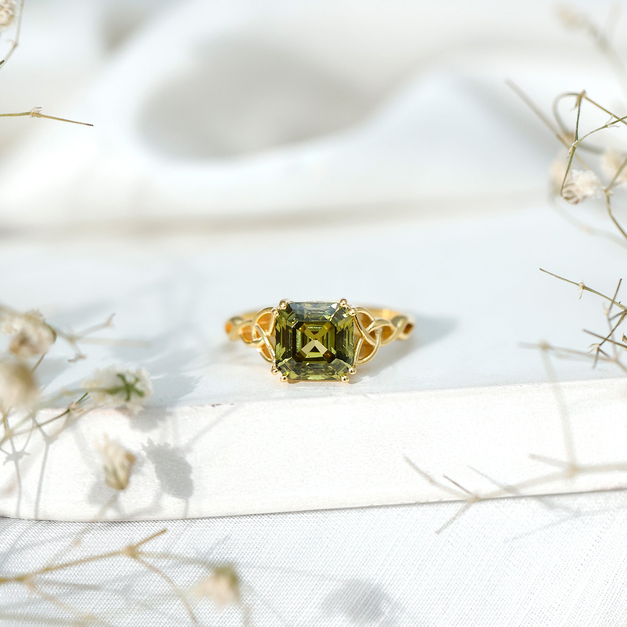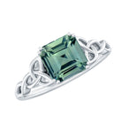 Certified Asscher Cut Lab Grown Green Sapphire Solitaire Celtic Engagement Ring