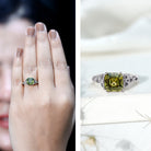 Celebrate your love with our Solitaire Celtic Engagement Ring, featuring Asscher Cut Lab Created Green Sapphire set as solitaire in a v prong setting. The carefully crafted band, adorned with Celtic details, adds a touch of elegance and sophistication. Make a statement of eternal devotion with a ring that stands as a shining beacon of your unique journey together.